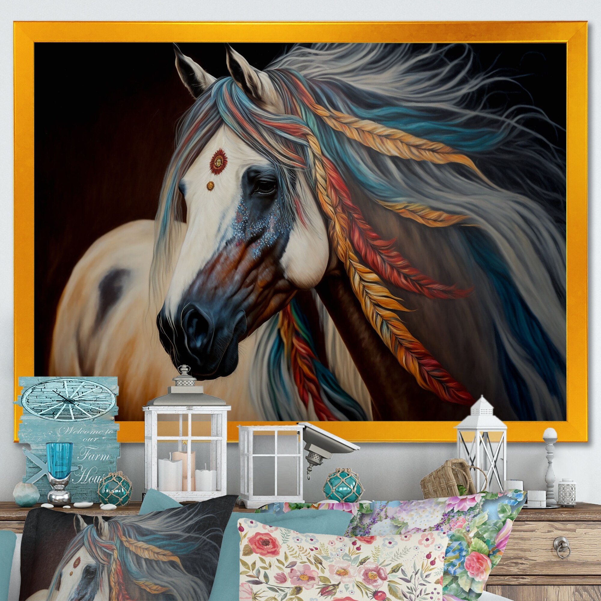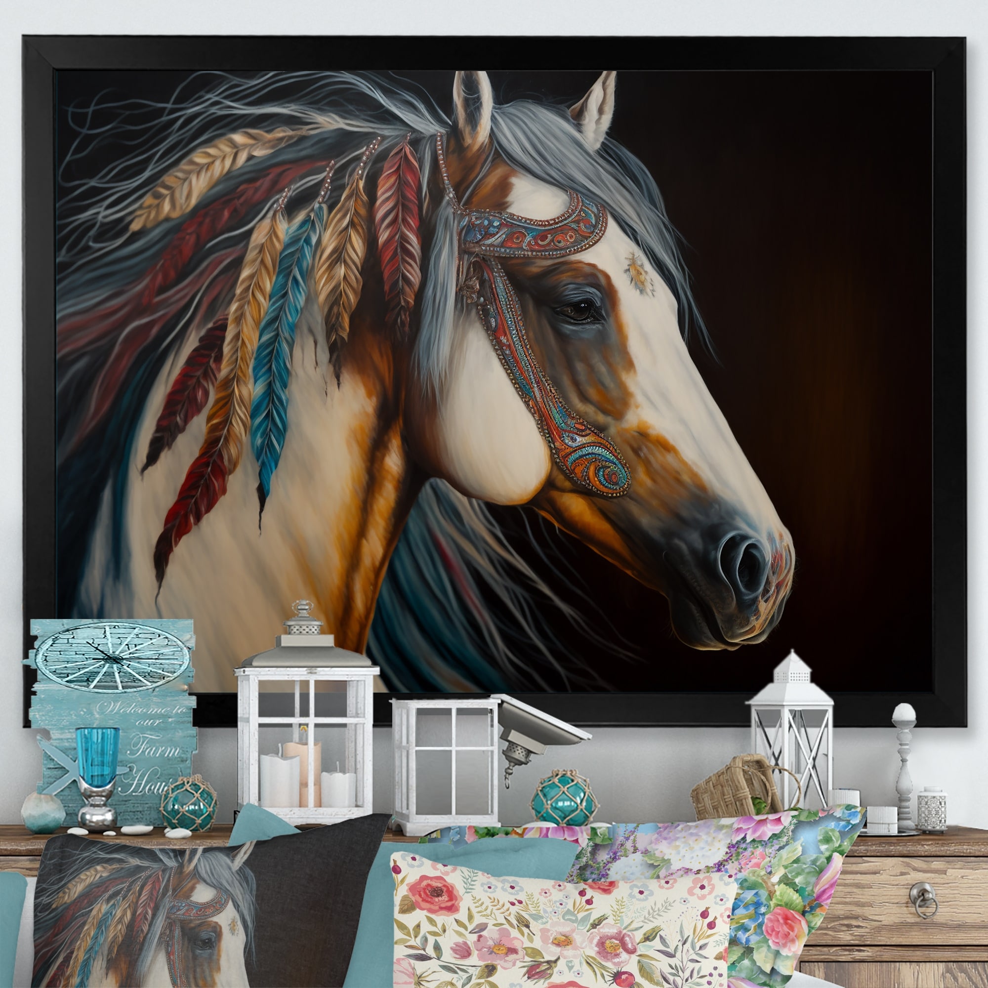 Designart "Colorful Native American Horse I" Modern Framed Art Print