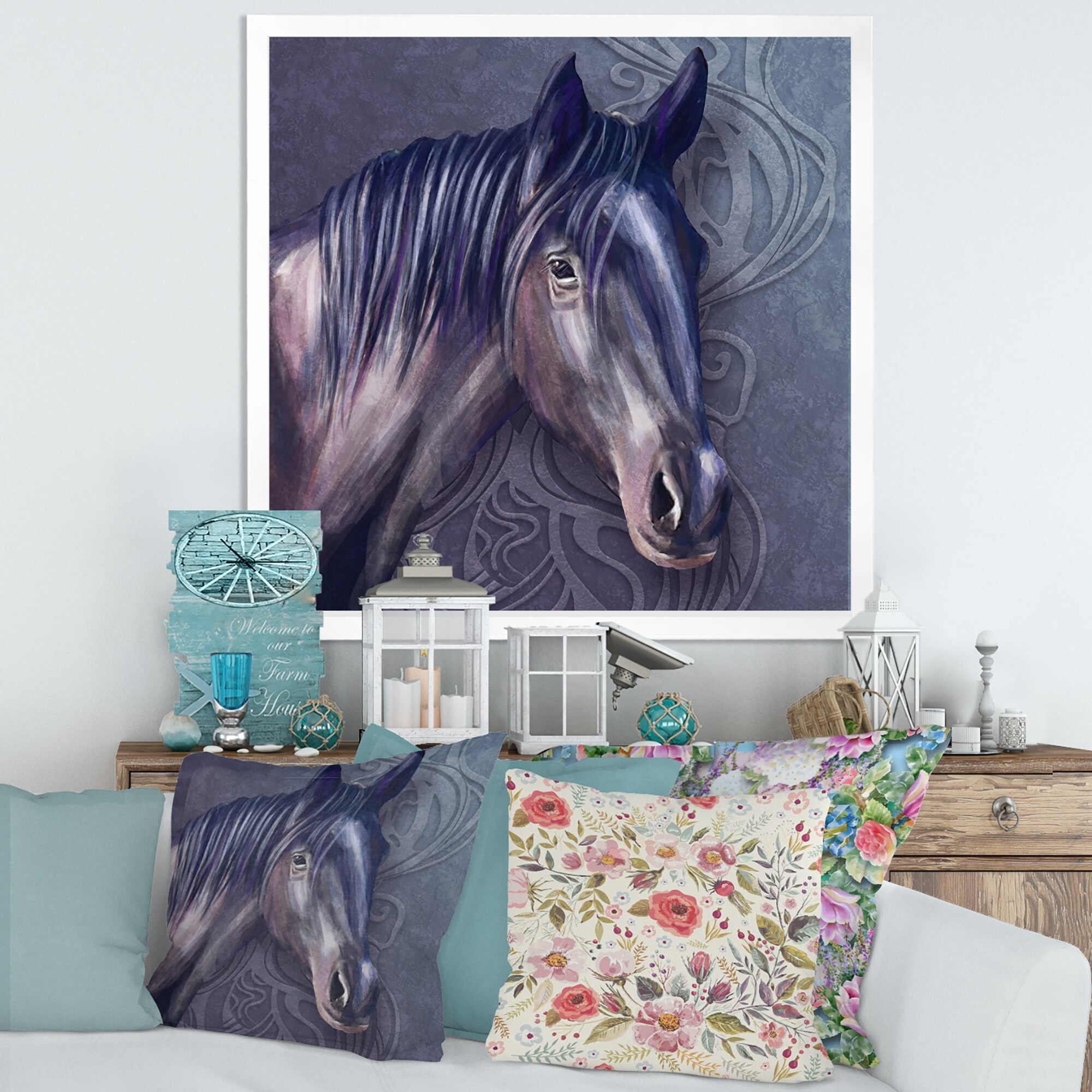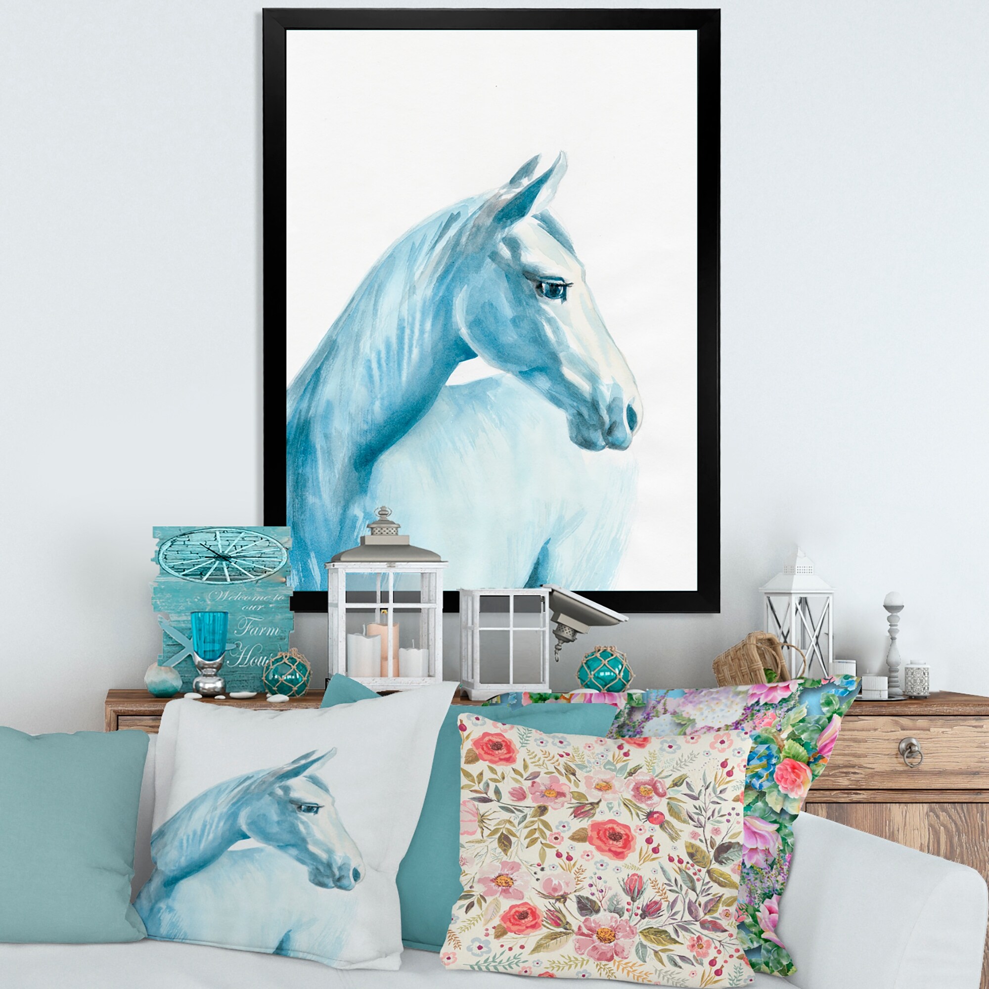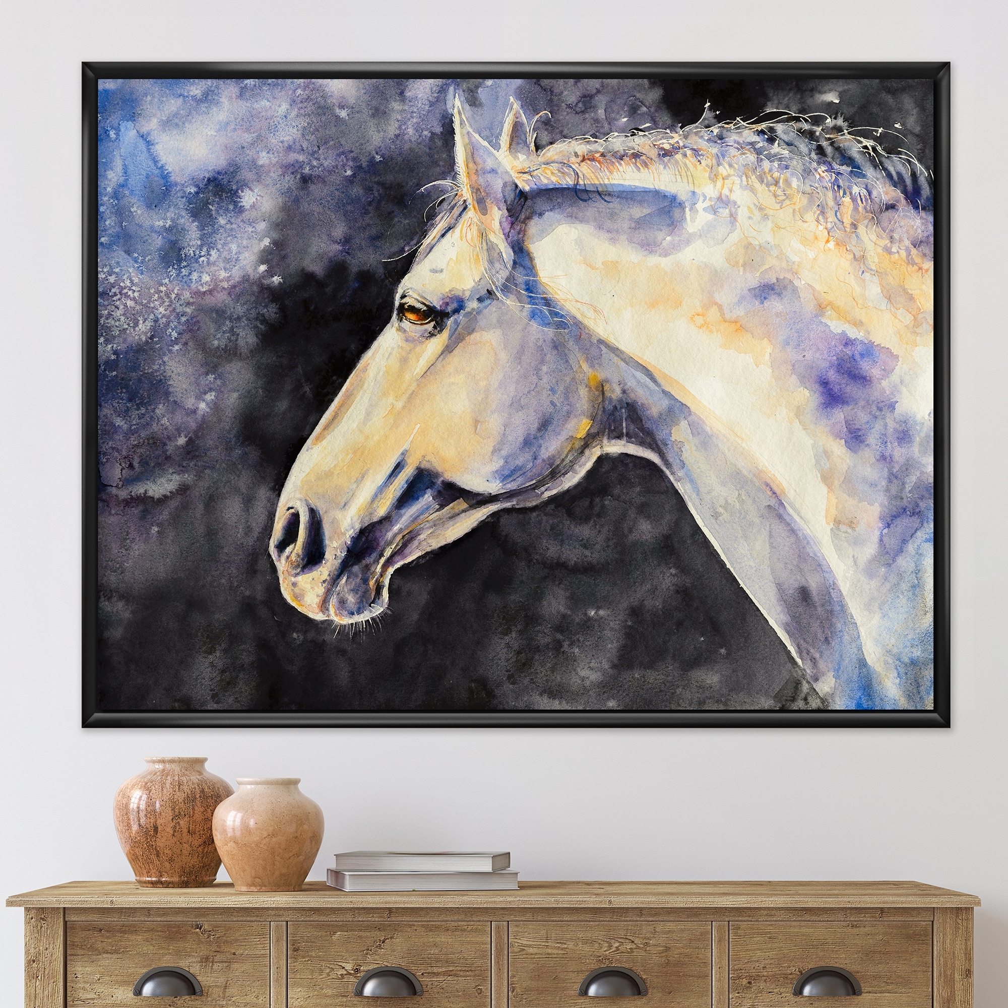 Designart "Portrait Of a LIght Blue Horse" Traditional Framed Art Print