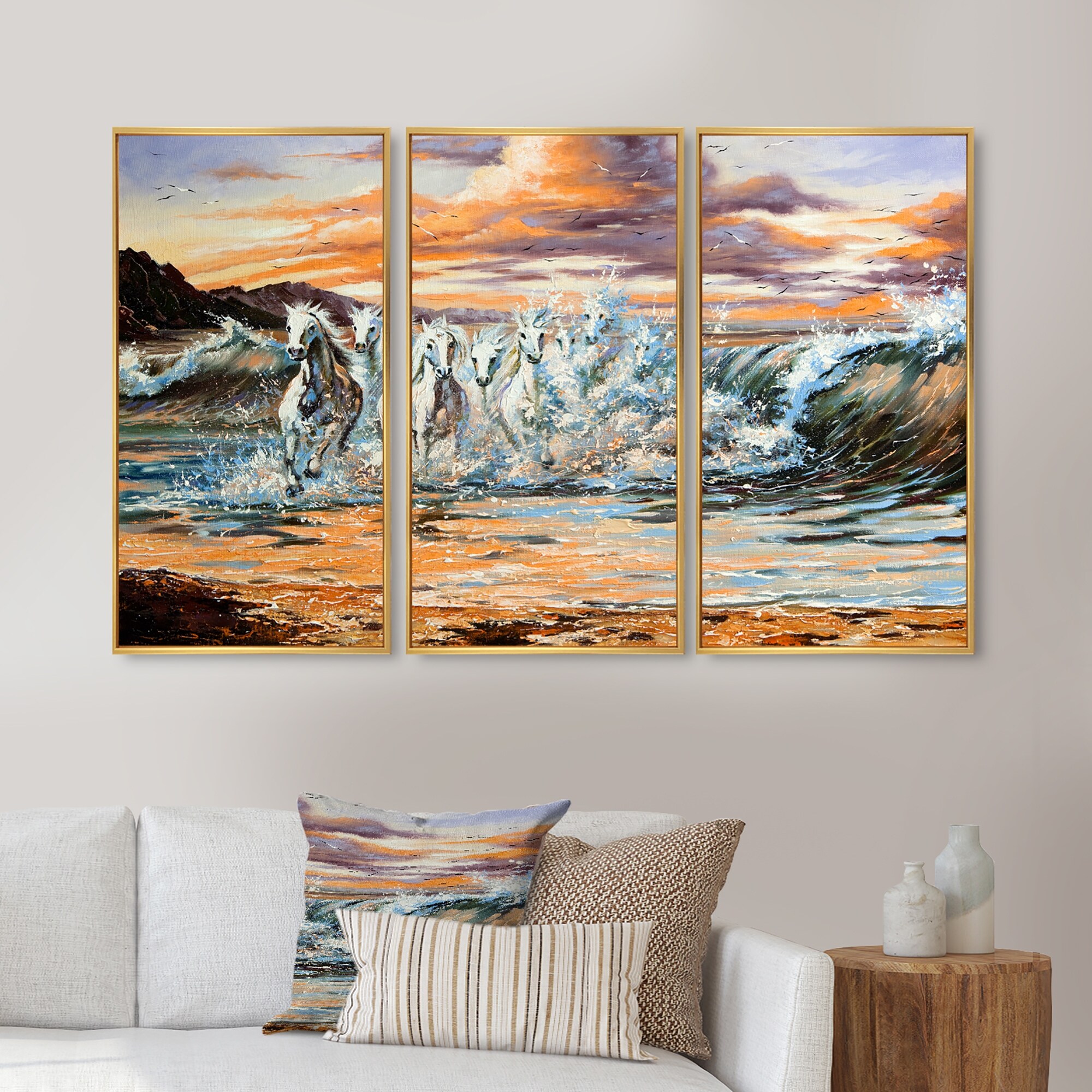 Designart "Horses from Waves" Animal Framed Art Prints Set of 3 - 4 Colors of Frames