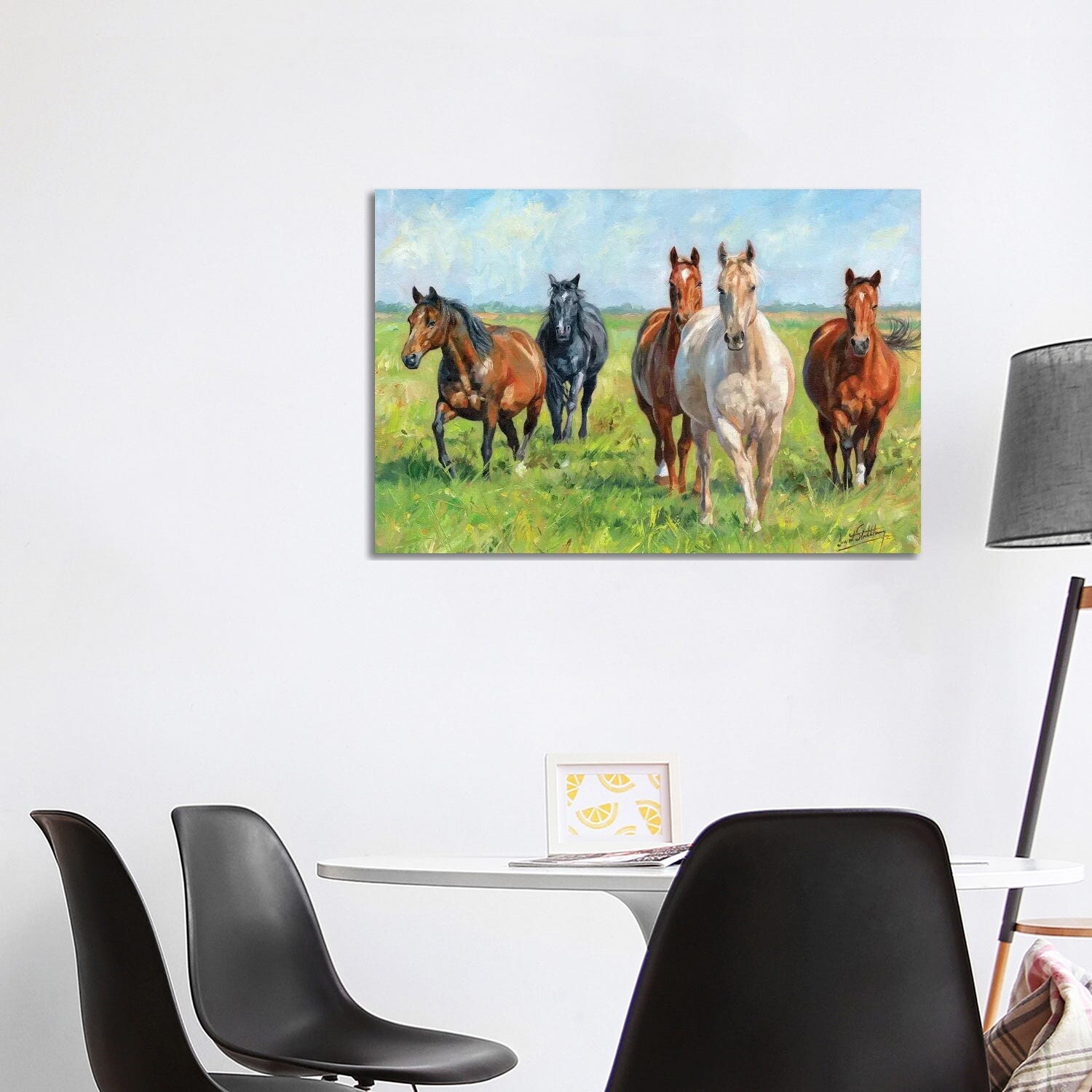 "Horses running in field" Black Float Frame Canvas Art