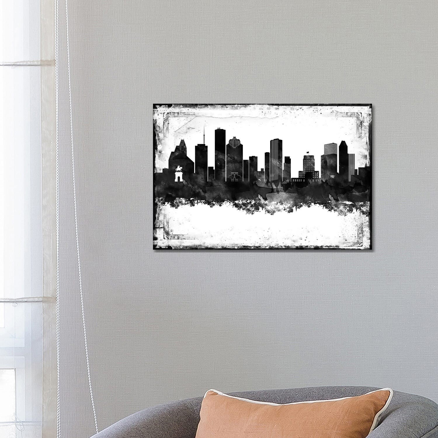 iCanvas "Houston Skyline Black & White" by WallDecorAddict Canvas Print