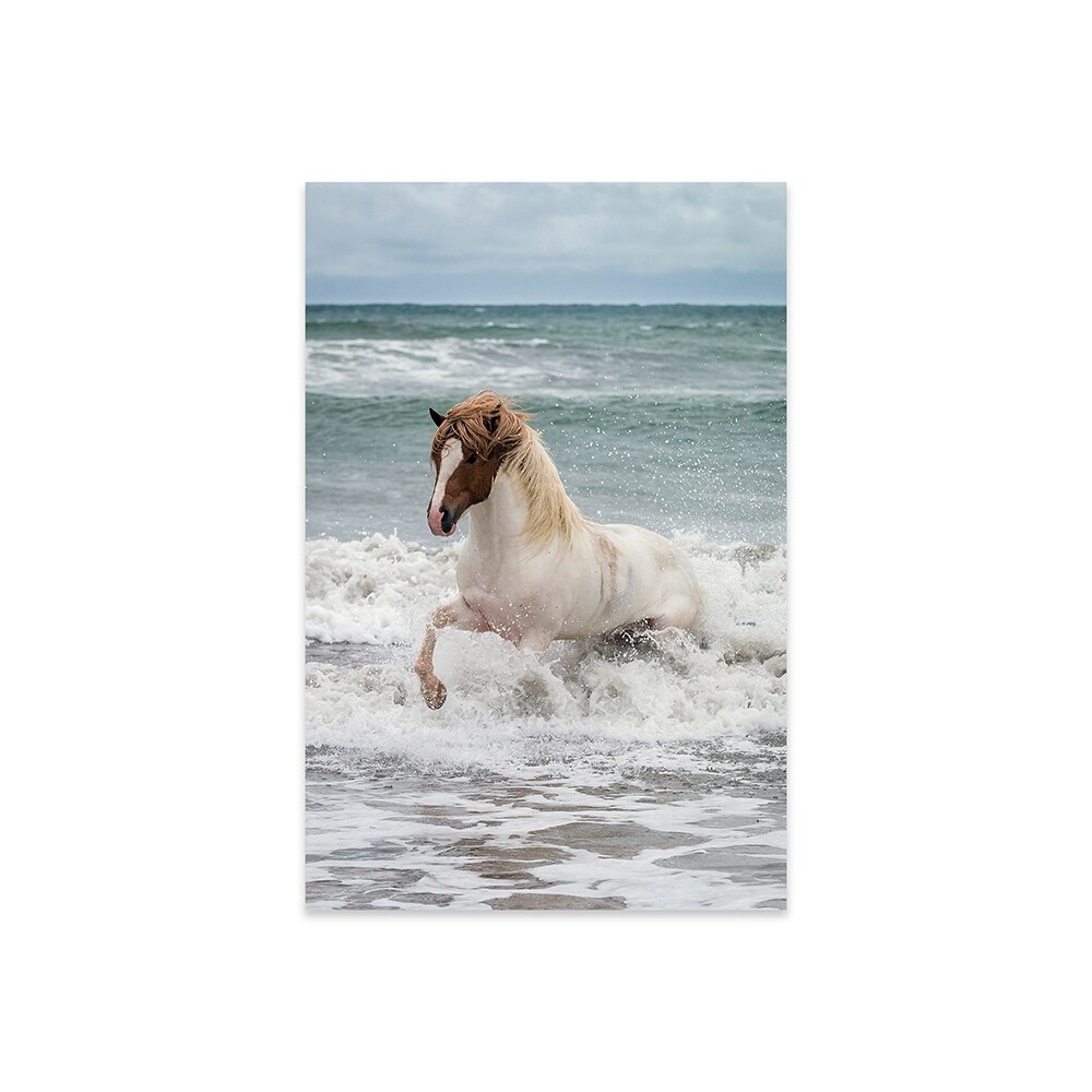 Icelandic Horse in the Sea, Longufjorur Beach, Snaefellsnes Peninsula, Iceland Print on Acrylic Glass by Panoramic Images