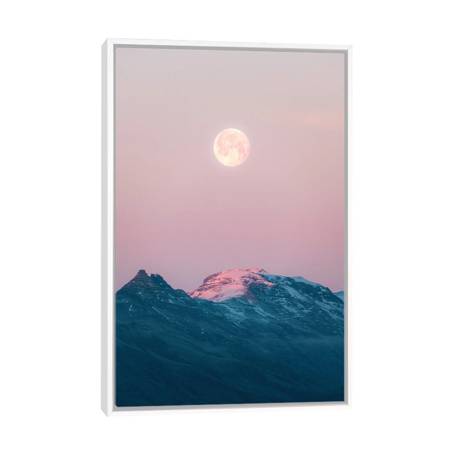 iCanvas "Moonrise Over Mountains During A Calm Sunset in Iceland" by Michael Schauer Framed
