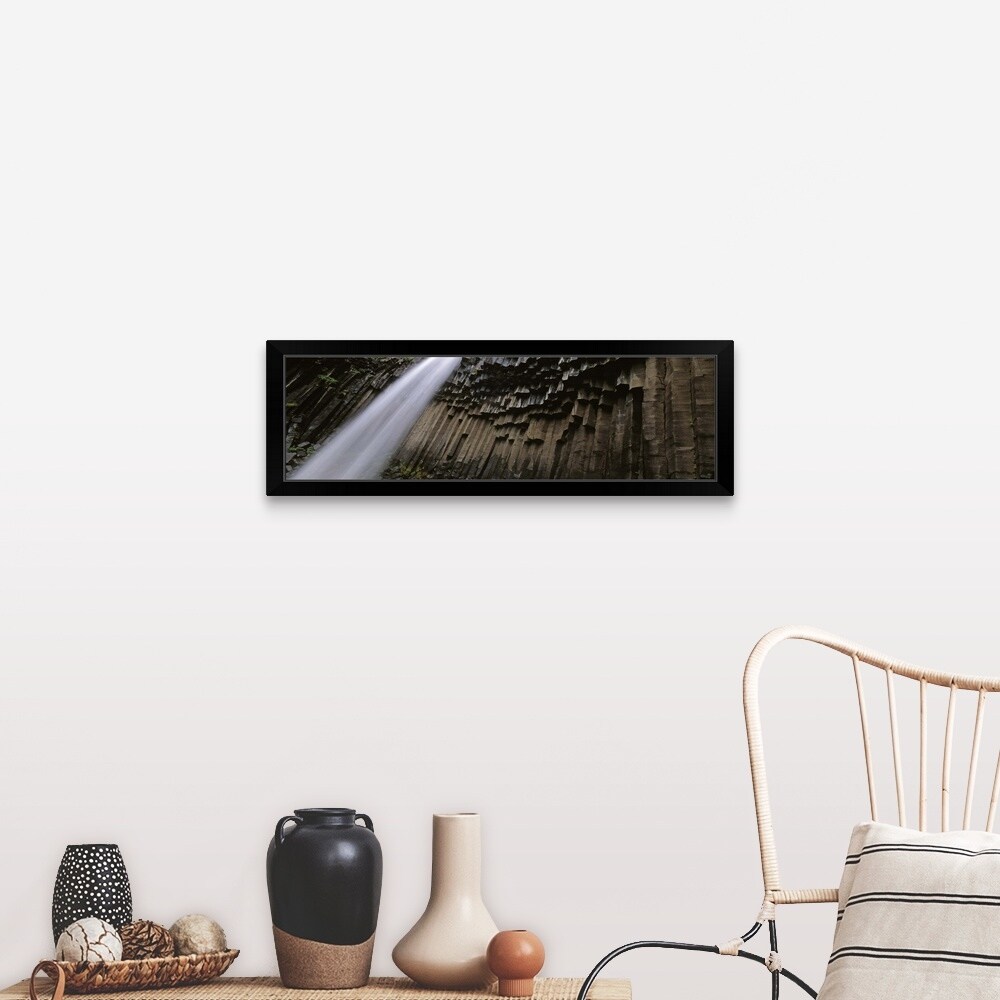"Iceland, Skaftafell National Park, Svartifoss Waterfall, Water flowing from the cliff" Black Framed Print
