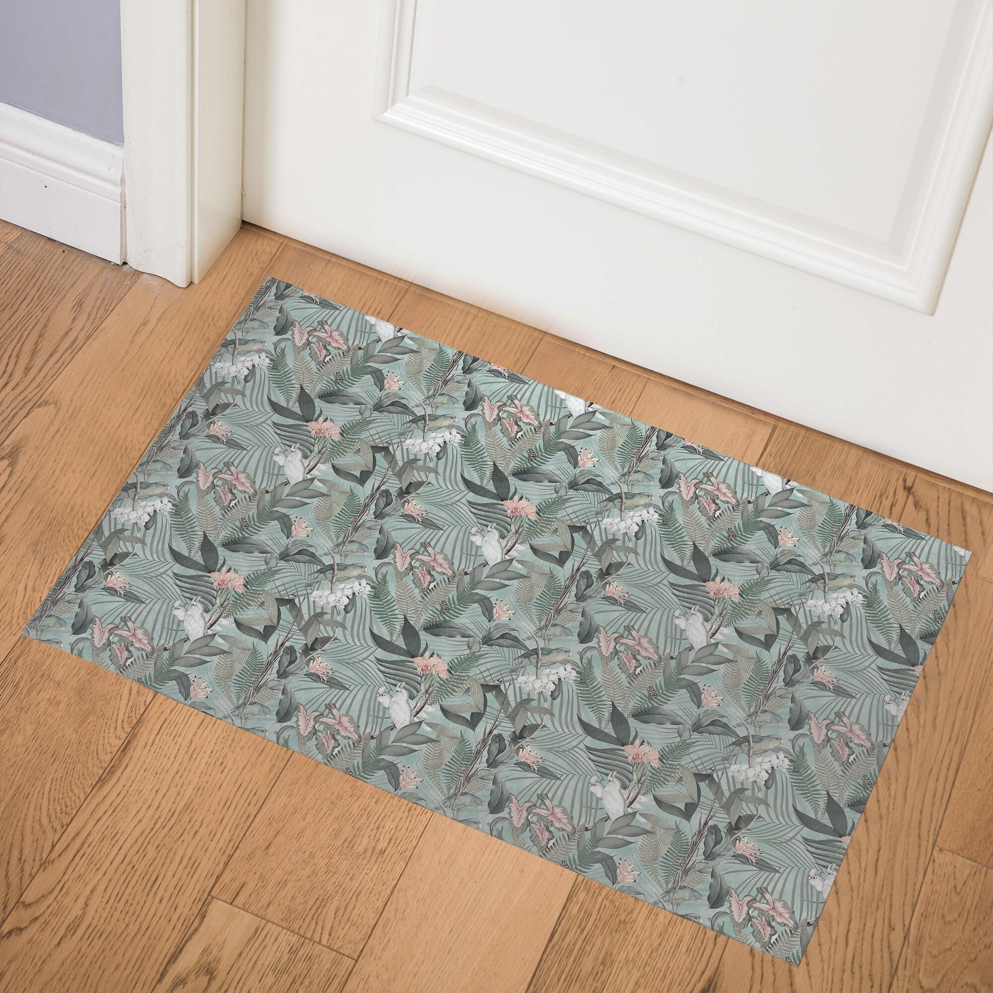 TROPICAL JUNGLE LIGHT BLUE & PINK Indoor Floor Mat By Kavka Designs