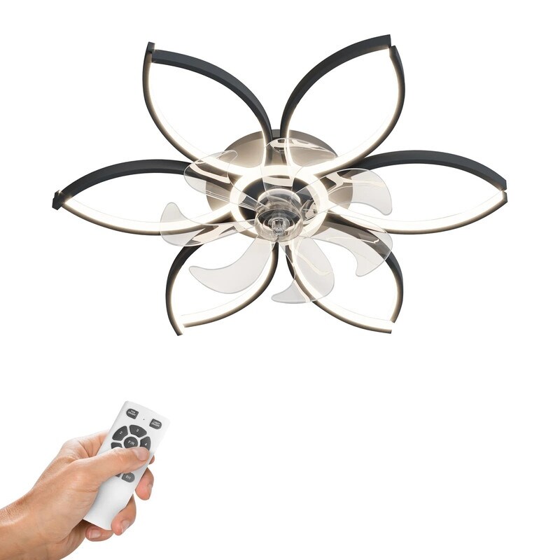 9.8-in Black Indoor Flush Mount Chandelier Ceiling Fan with Light Remote (7-Blade)