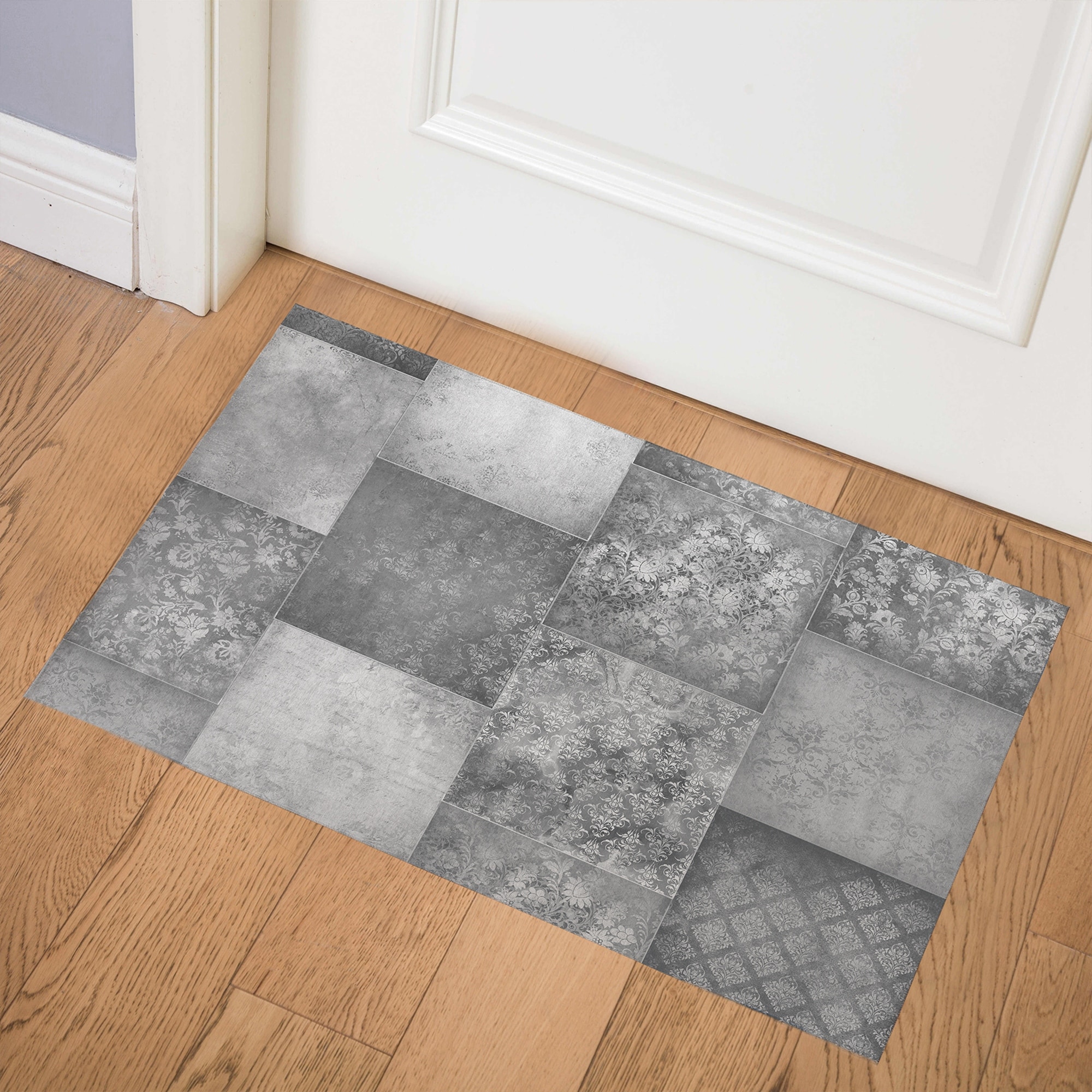 ECLECTIC BOHEMIAN PATCHWORK LIGHT GREY Indoor Floor Mat by Kavka Designs