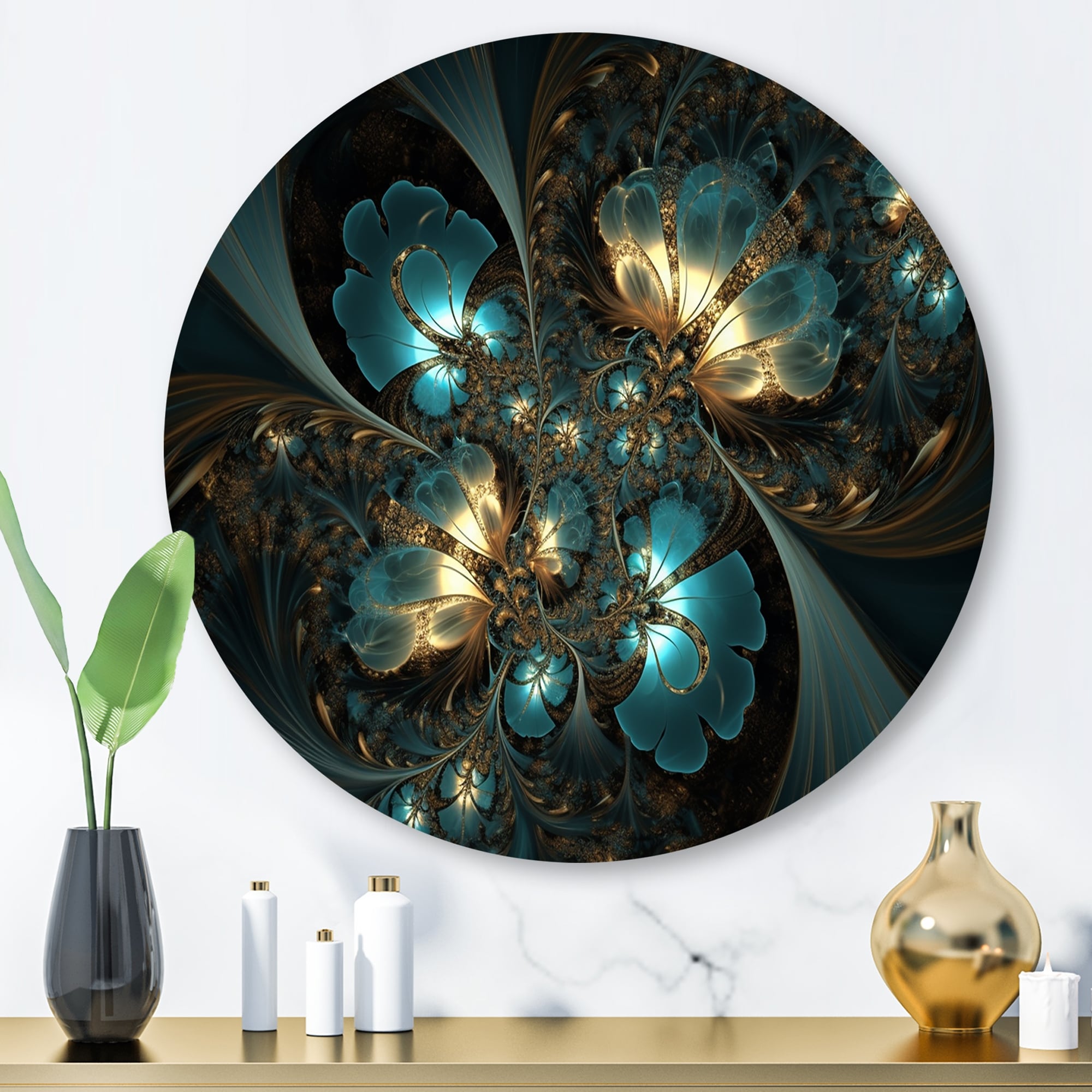 Designart "Blue And Gold Melodies of Infinite Order II" Abstract Fractal Metal Round Wall Art
