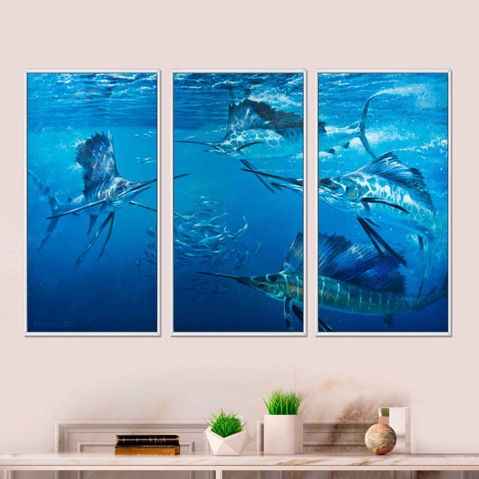 Designart "Michael Jackson 06" Coastal-Animal Framed Canvas Wall Art Print Set of 3 - 4 Colors of Frames