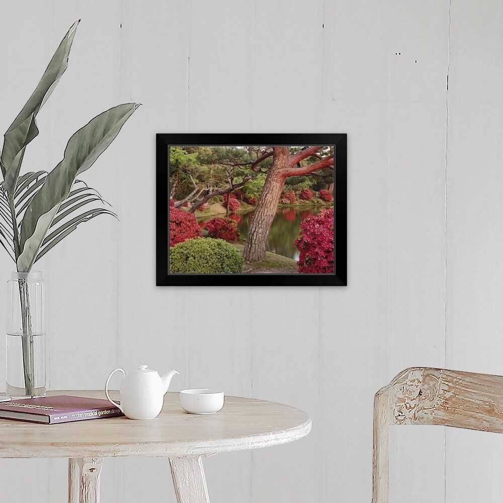 "Trees along a lake, Byodo-In, Kyoto Prefecture, Honshu, Japan" Black Framed Print