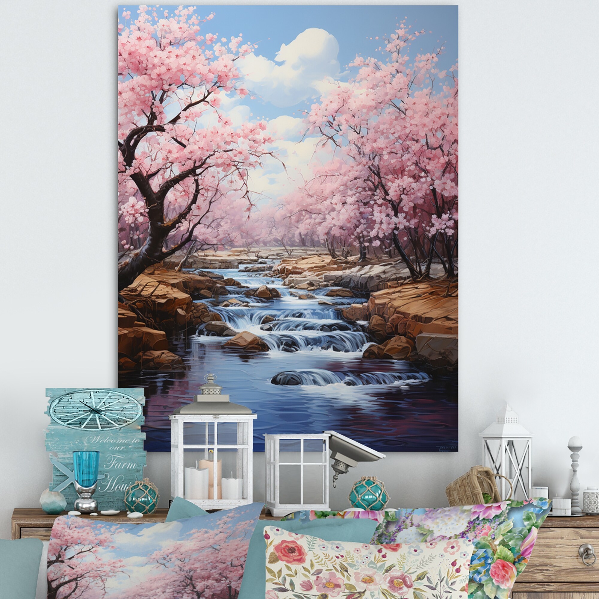 Designart "Japon Art Sakura Dream Pink And Blue III" Japan Art Canvas Print
