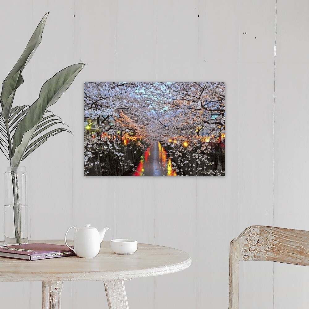 "Cherry blossoms in Naka Meguro during the evening, Japan" Canvas Wall Art