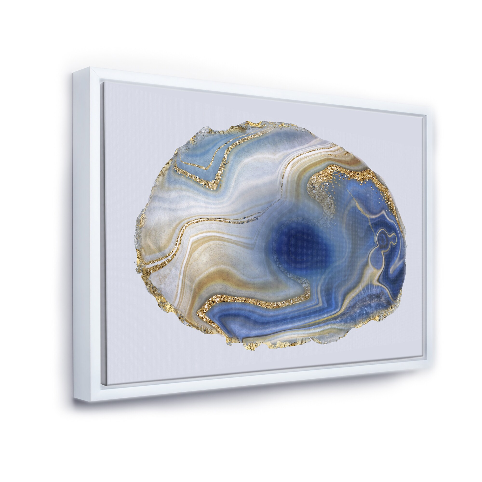 Designart "Ocean Blue Golden Jasper Agate I" Glam Framed Canvas Wall Art Print