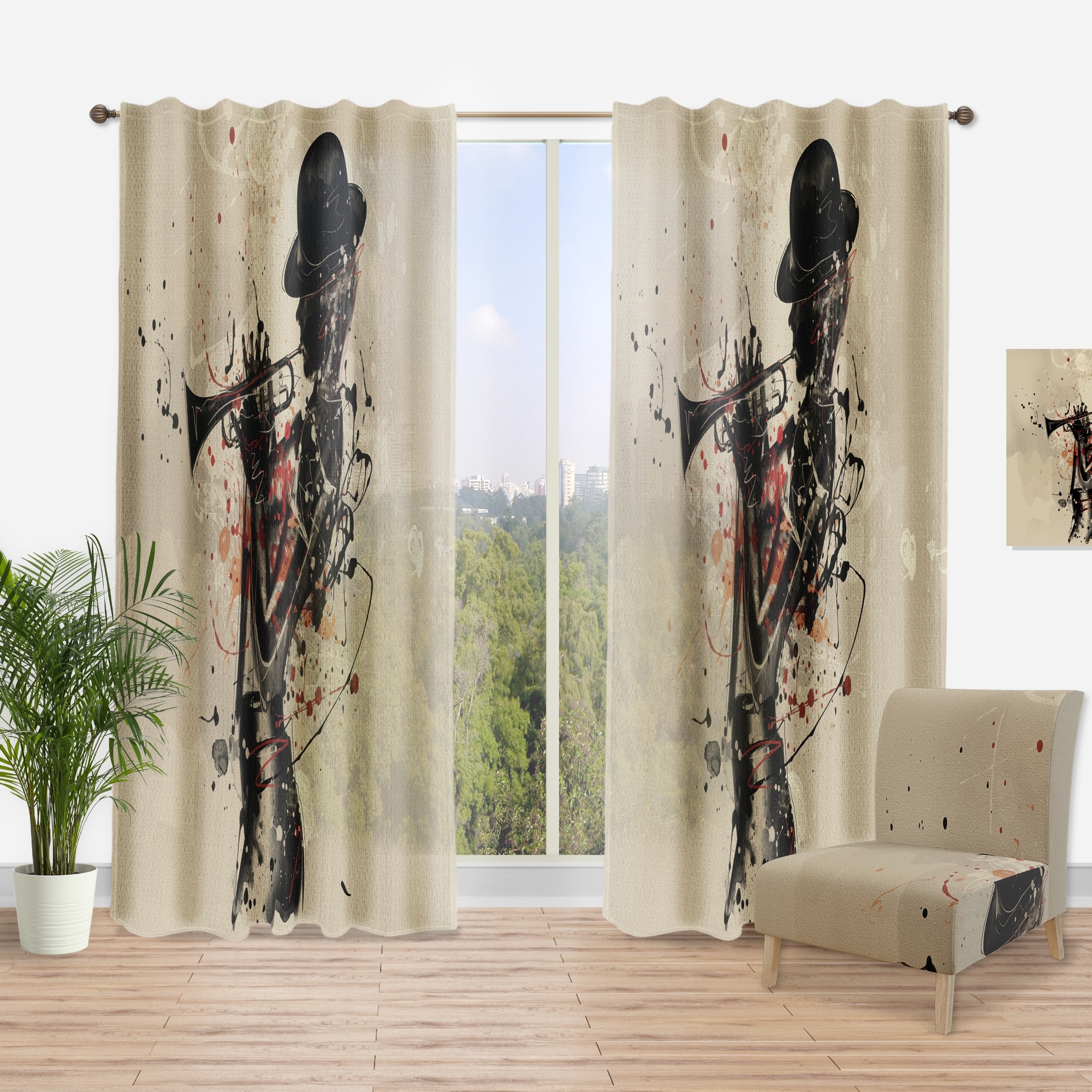 Designart 'Woman Playing Jazz Trumpet' Modern Curtain Single Panel