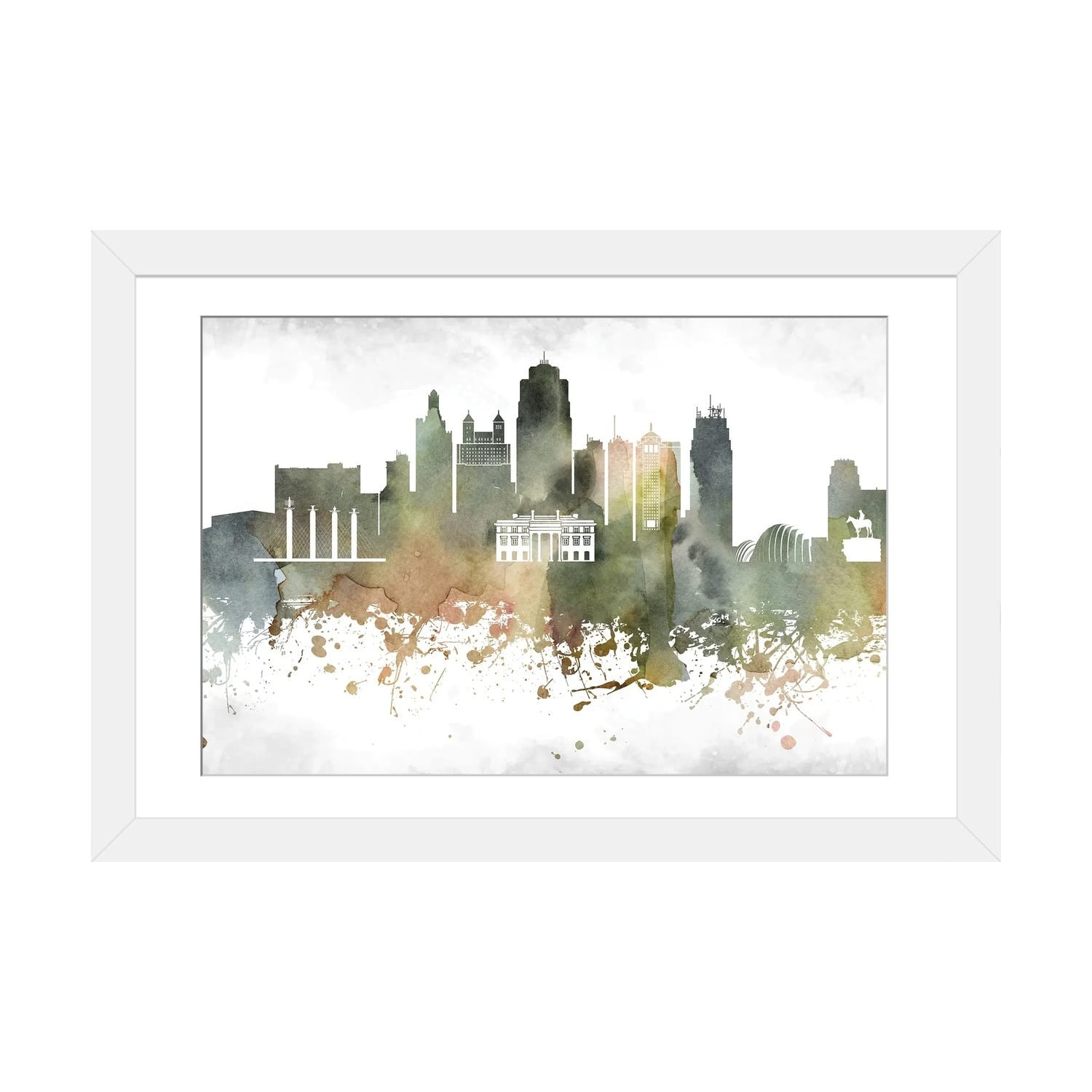 iCanvas "Kansas City Landmarks Watercolor Poster" by Paul Rommer Framed