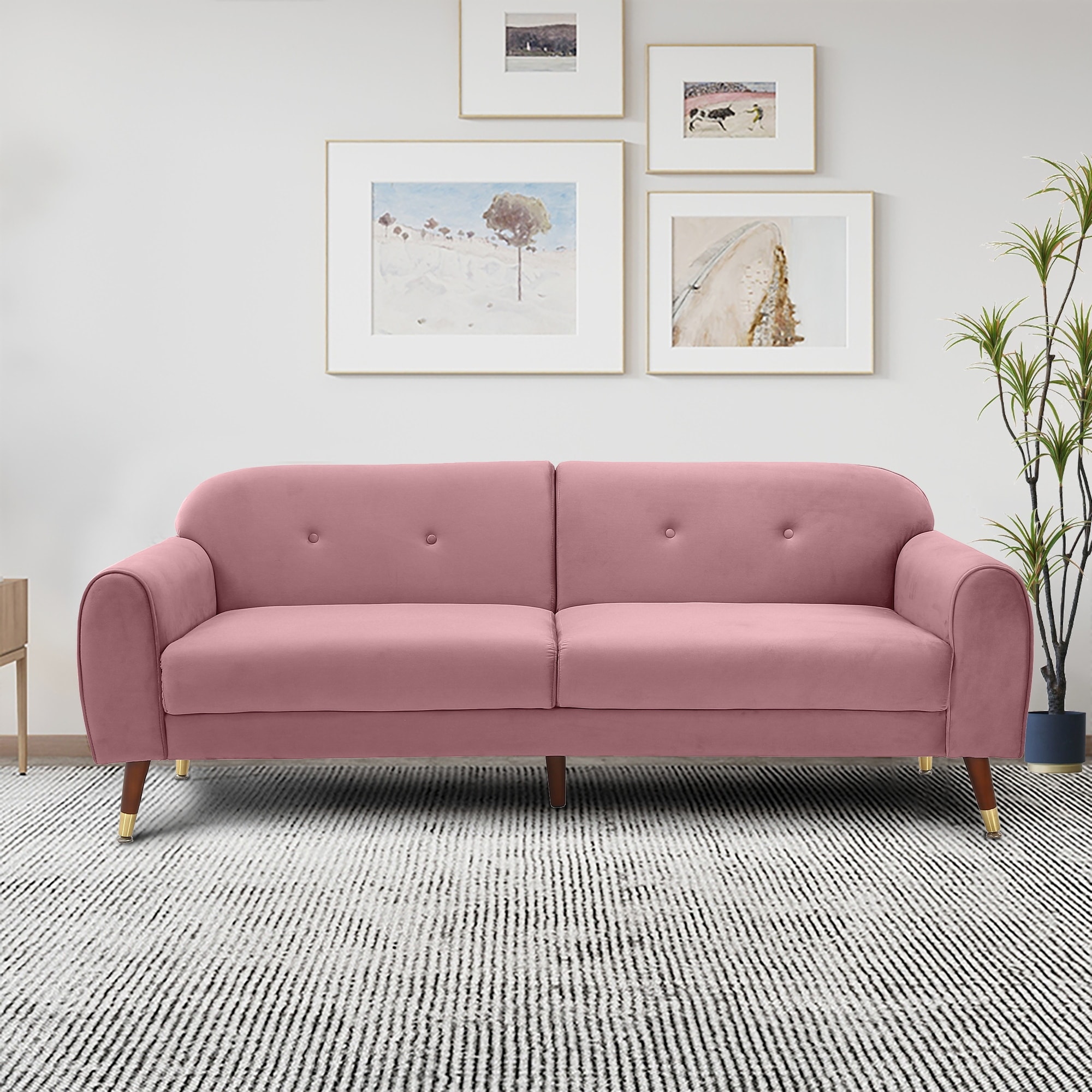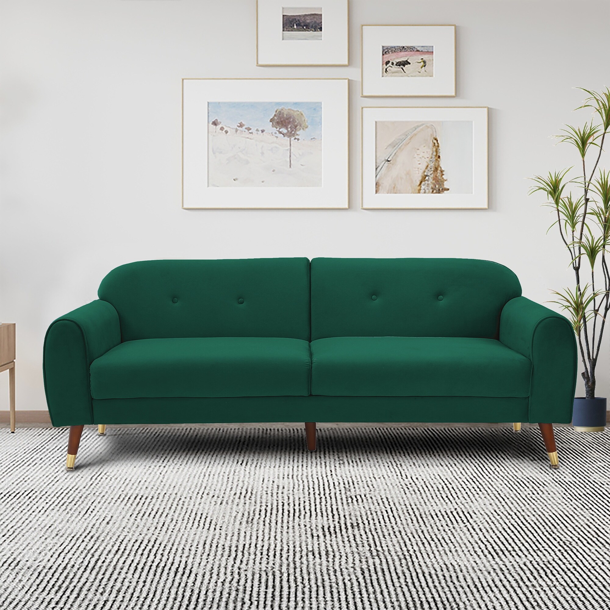 Velvet Upholstered Sofa Modern Button Tufted Back 3 Seater Sofa Couch with Metal Legs
