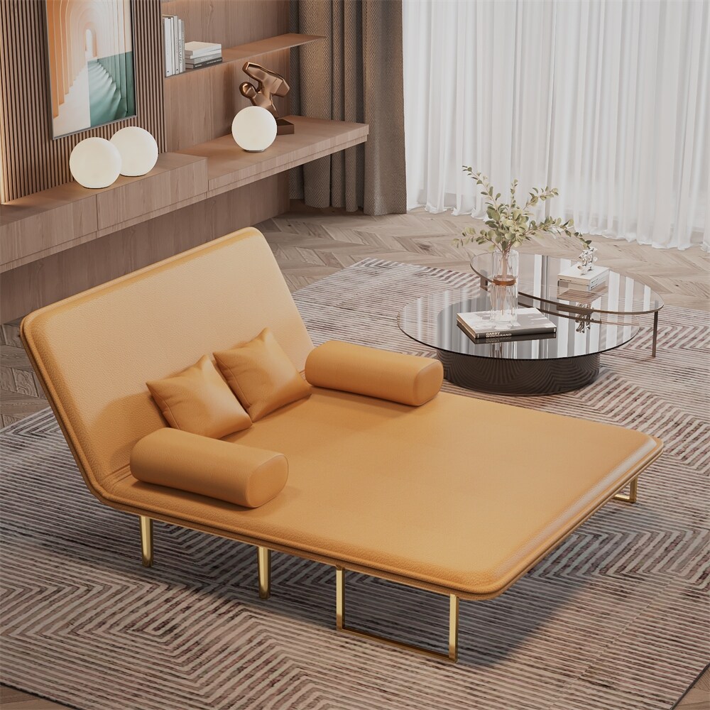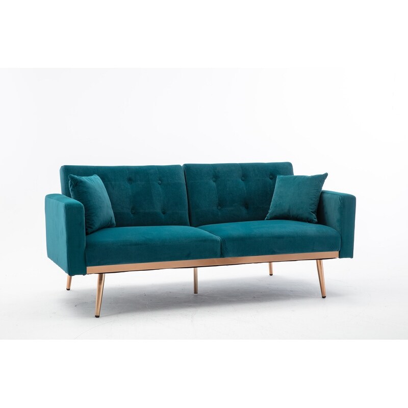 Loveseat Sofa Bed Velvet Upholstered Split-back Design Convertible Futon Sofa Adjustable Back with 2 Pillows and Metal Legs