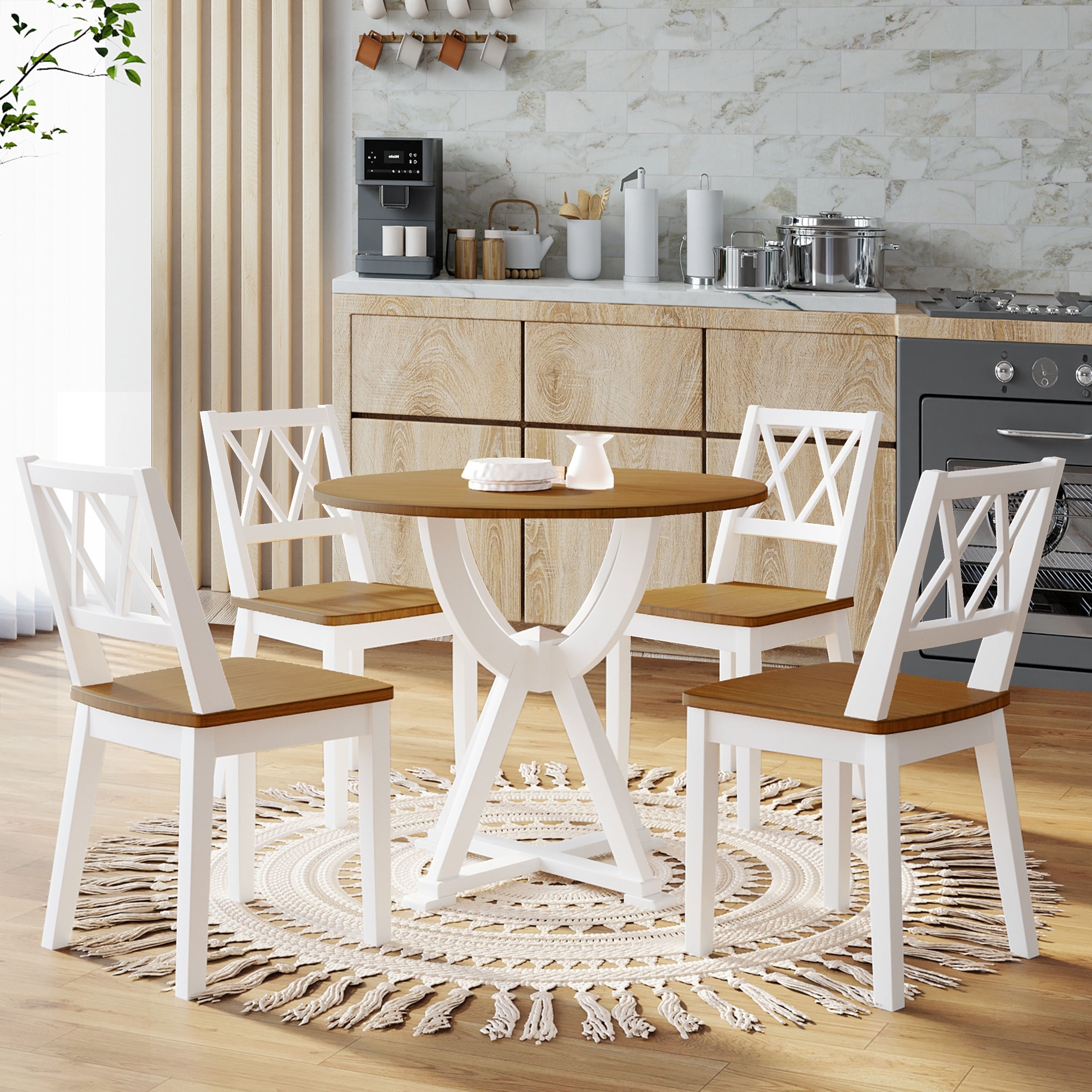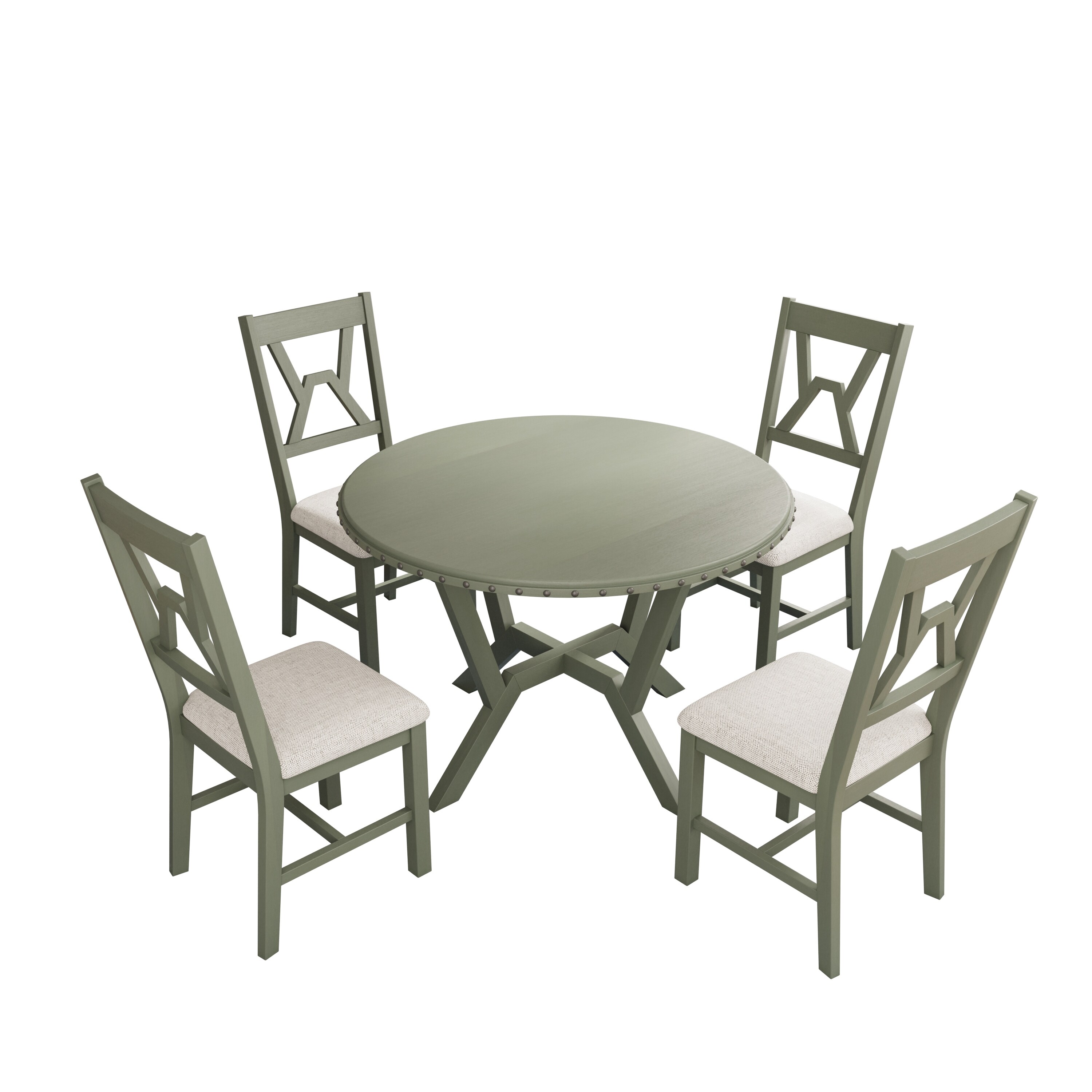5-Piece Round Dining Table Set with Cross Legs Upholstered Chairs
