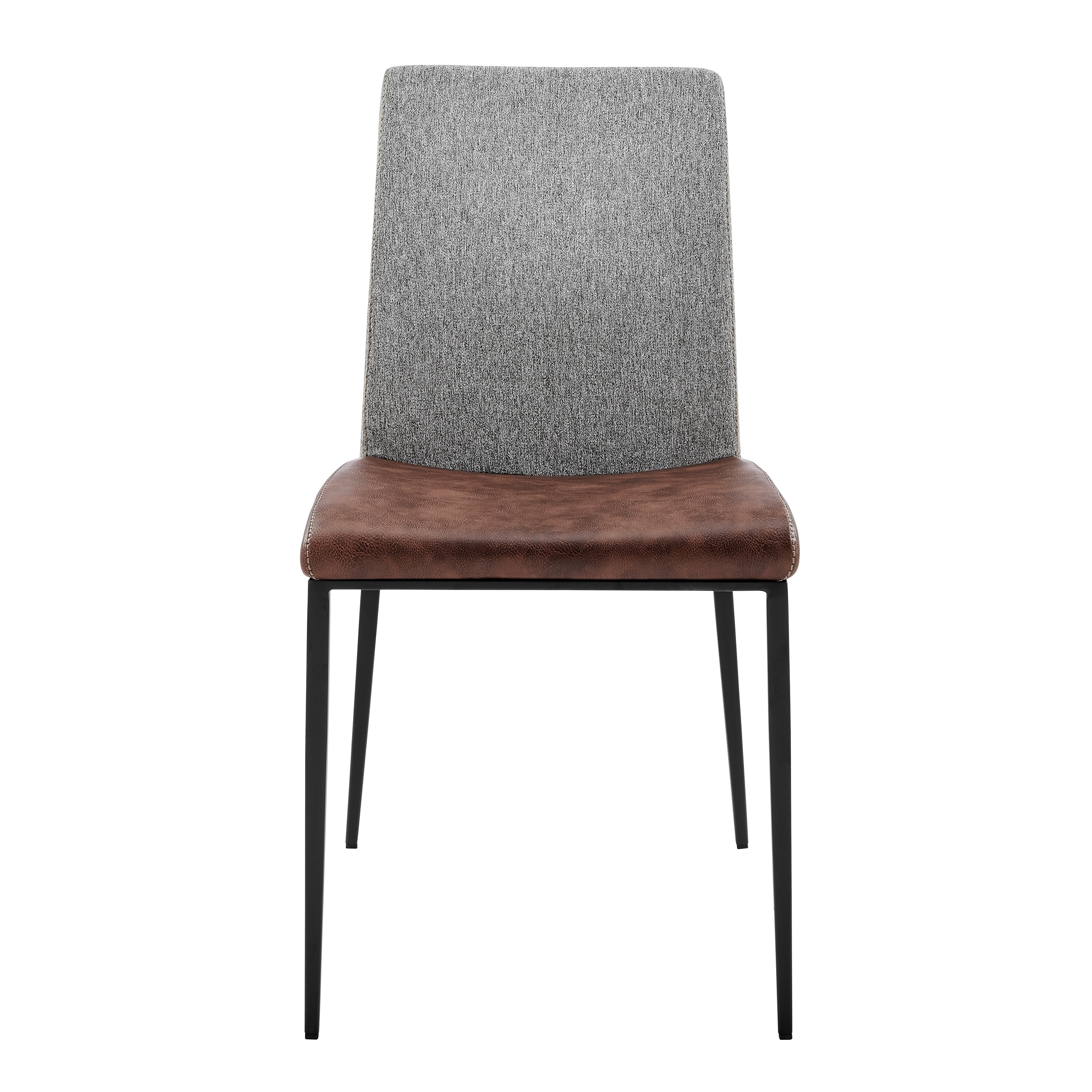 Rasmus Side Chair with Light Brown Leatherette and Gray Fabric with Matte Black Legs - Set of 2