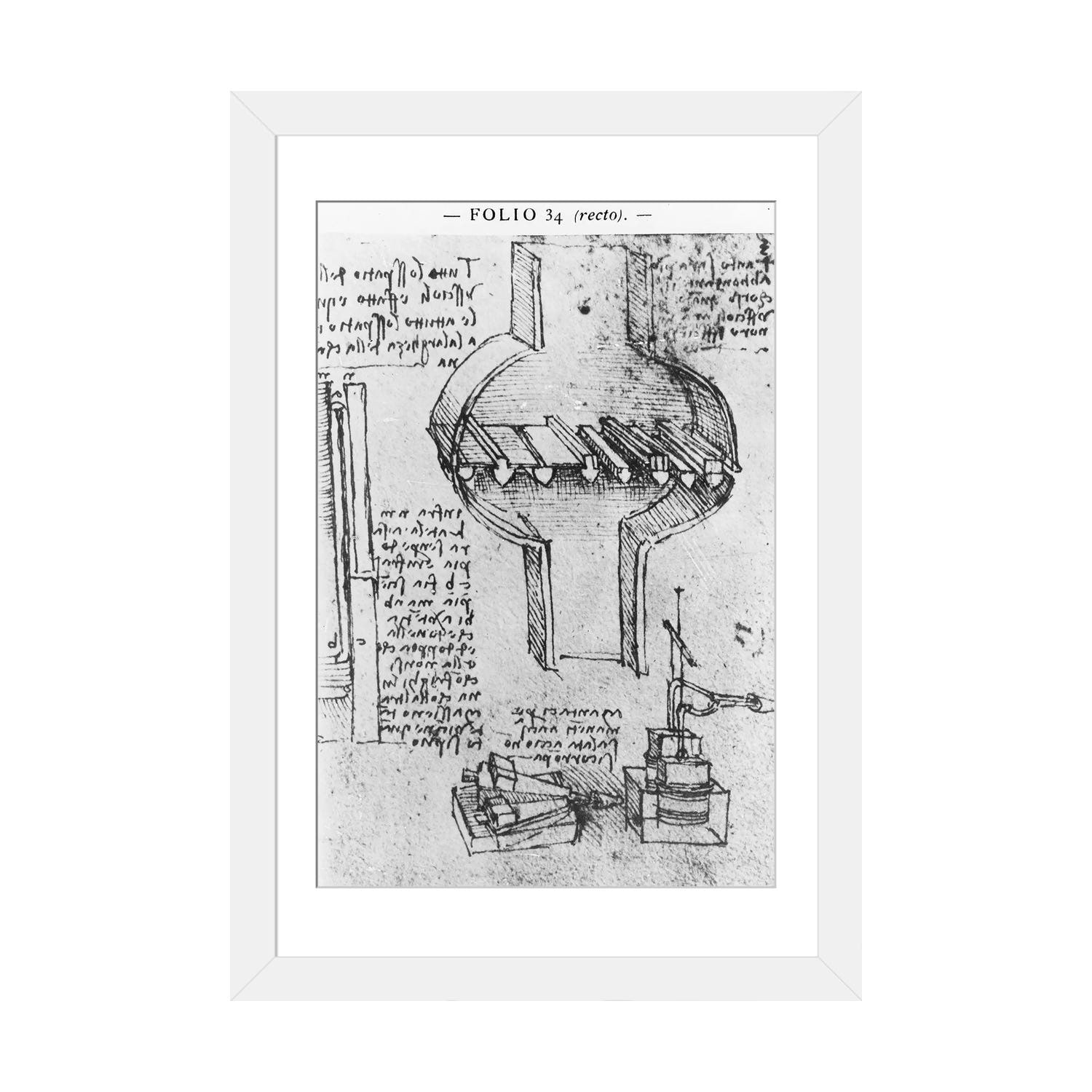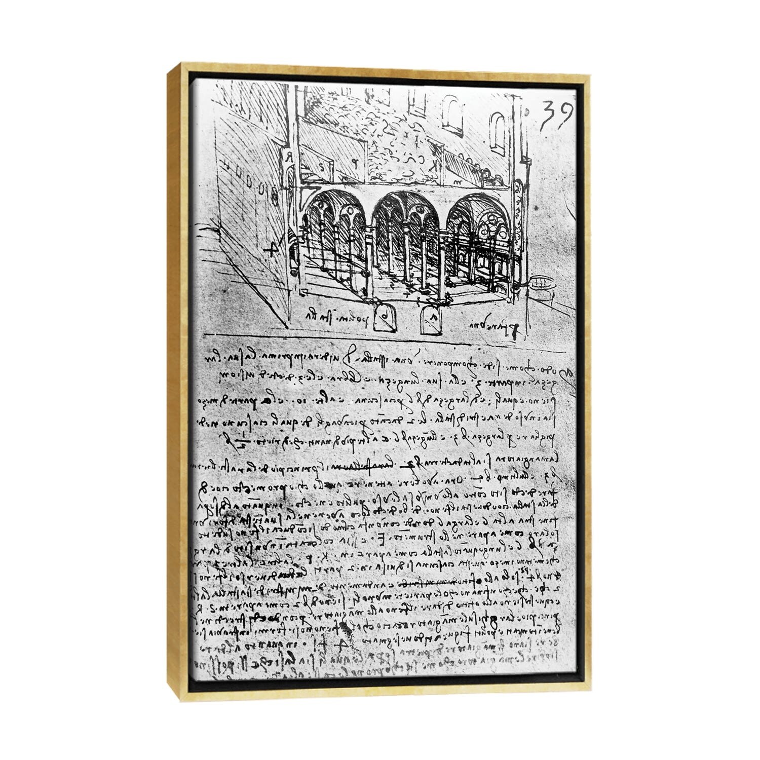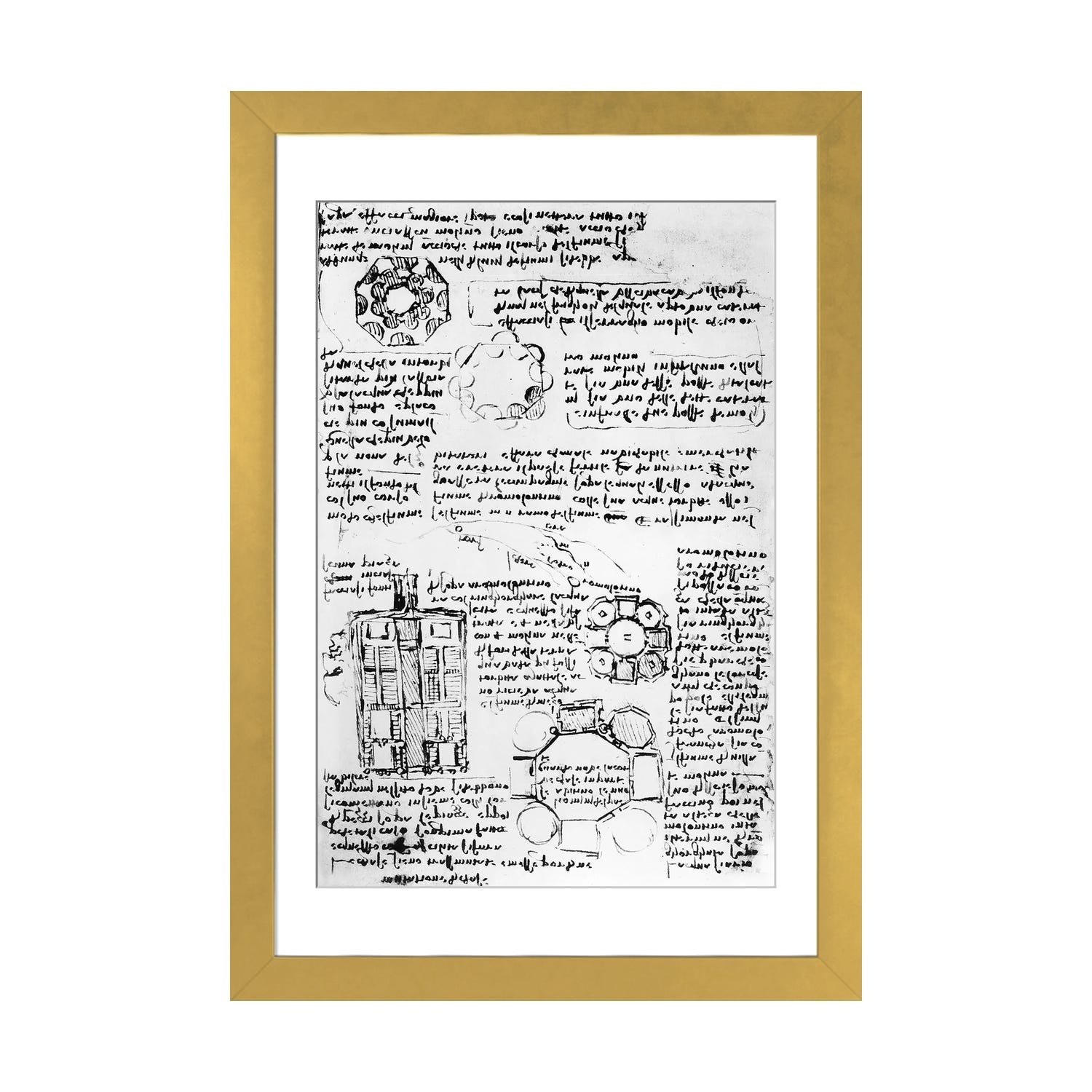 iCanvas "Studies for stables, Folio 39r, from Paris Manuscript B 2173, 1487-90 " by Leonardo da Vinci Framed