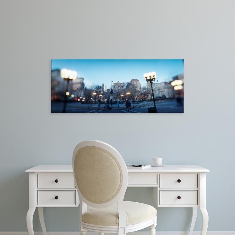 Easy Art Prints Panoramic Image 'Lampposts lit up at town square, Union Square, New York City, New York' Canvas Art