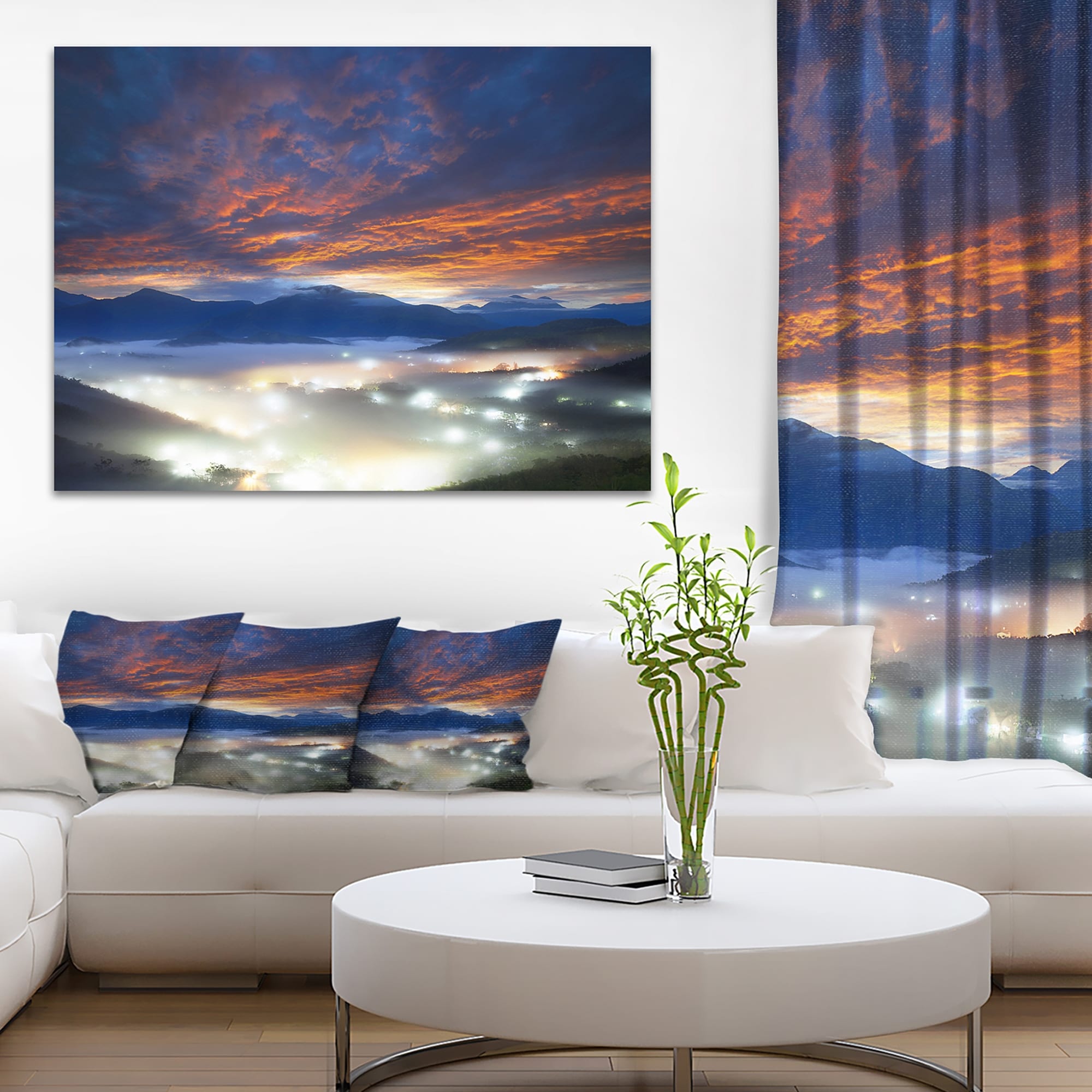Designart "Fiery Clouds and Lit up Villages" Landscape Photo Canvas Art Print