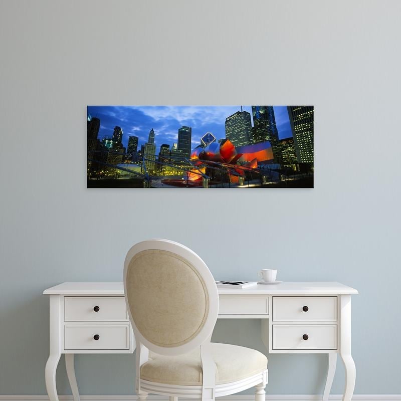 Easy Art Prints Panoramic Image 'Buildings lit, Pritzker Pavilion, Millennium Park, Chicago, Illinois' Canvas Art