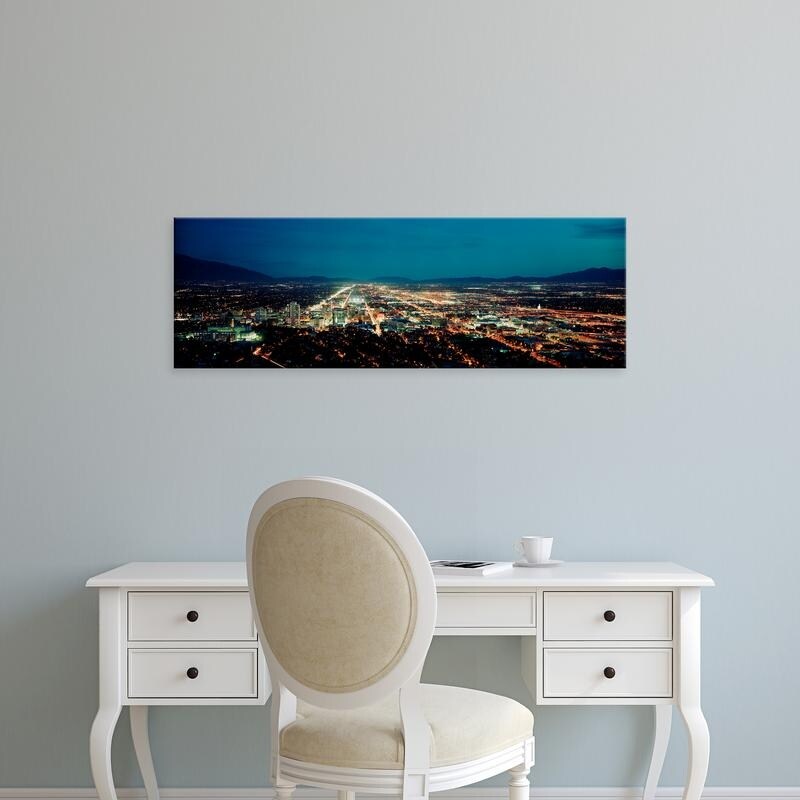 Easy Art Prints Panoramic Images's 'City lit up at night, Salt Lake City, Utah, USA' Premium Canvas Art
