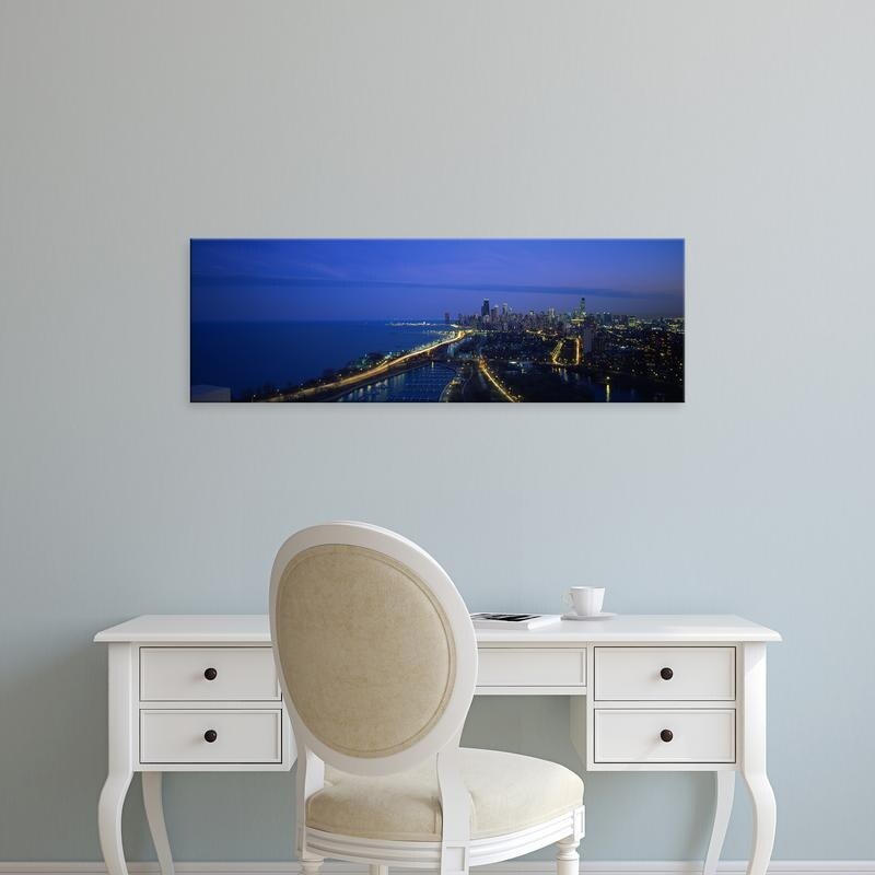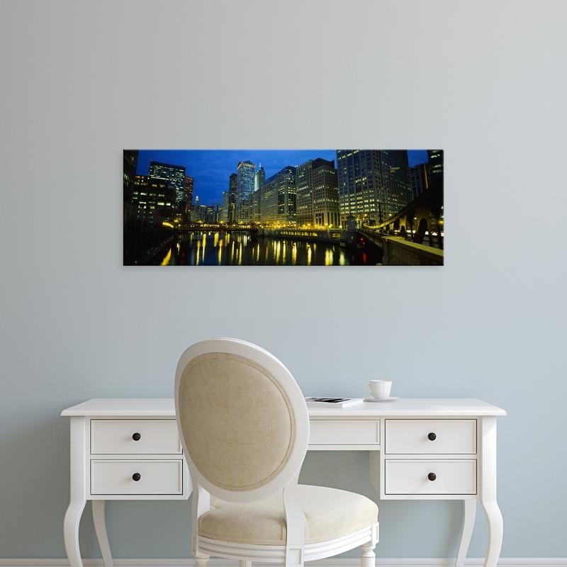 Easy Art Prints Panoramic Images's 'Buildings Lit Up at Dusk, Chicago, Illinois, USA' Premium Canvas Art