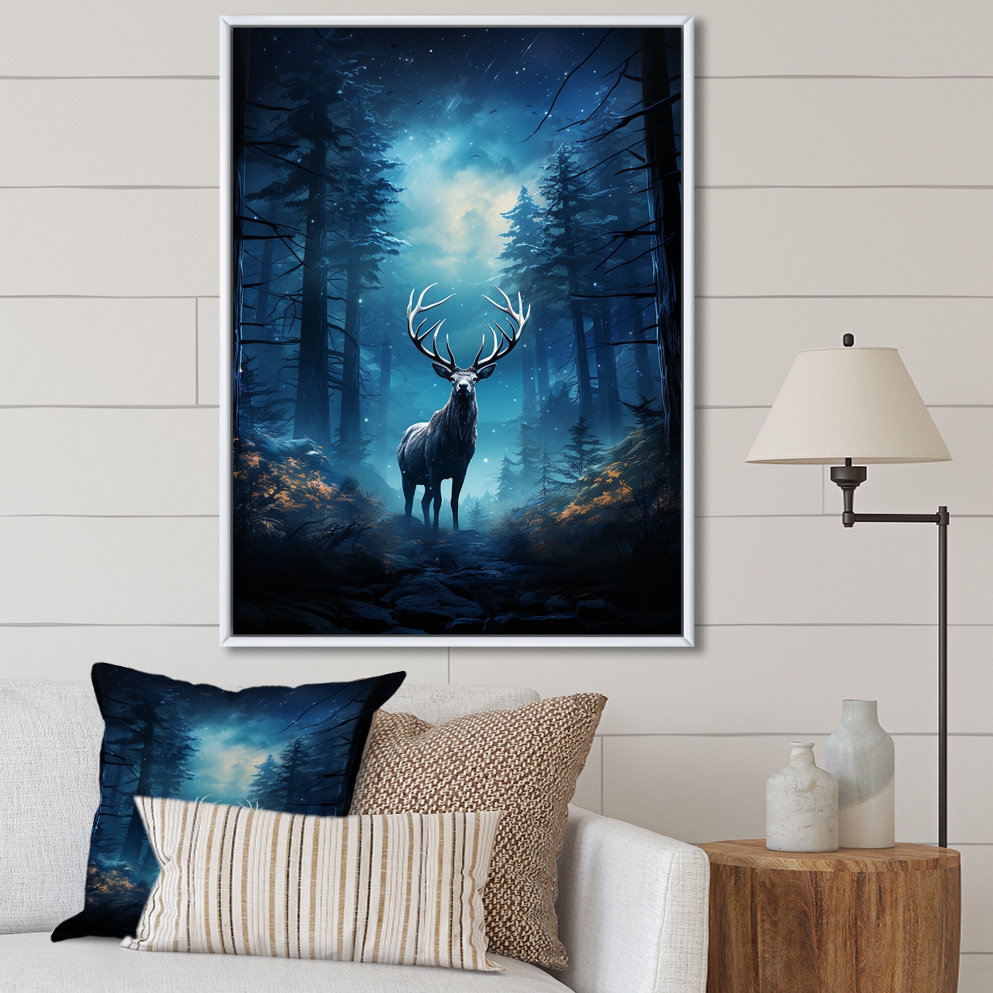 Designart "Blue Moose Midnight Magic I" Moose Framed Canvas Print