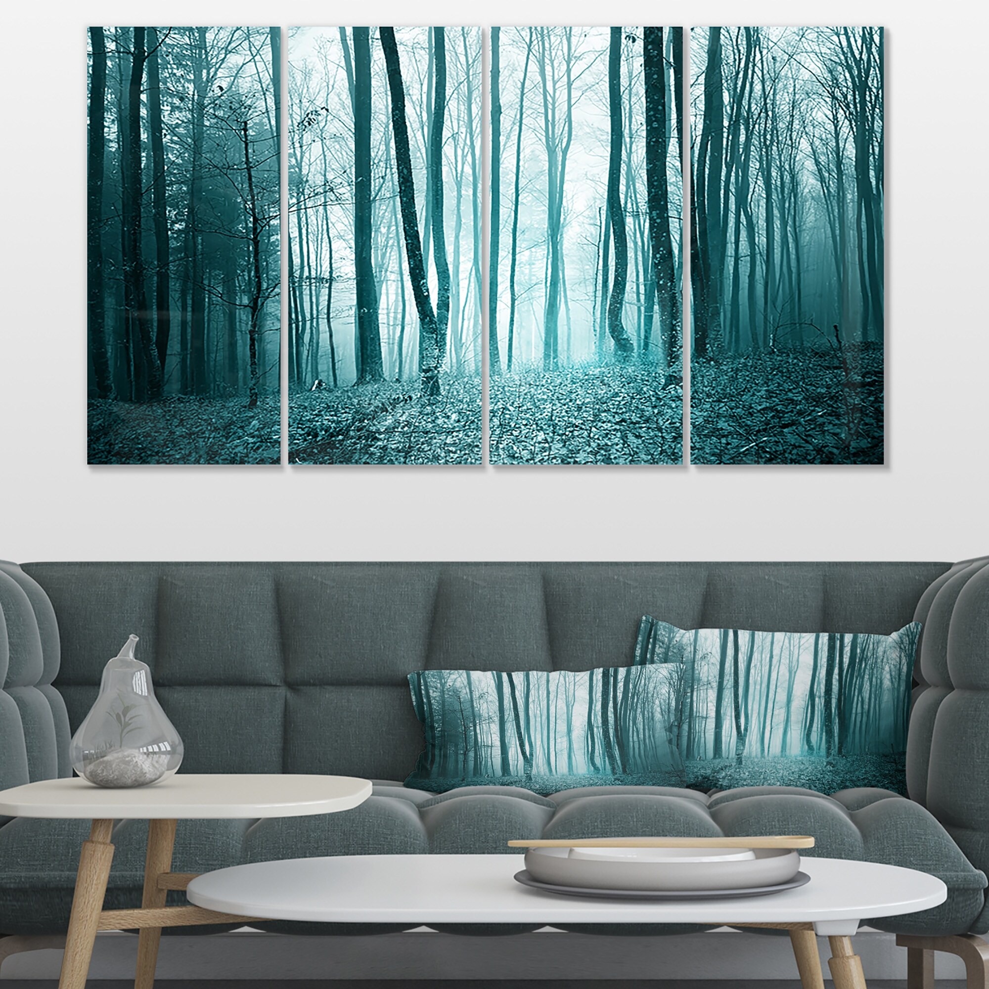 Designart "Turquoise Colored Magic Forest" Modern Forest Canvas Art