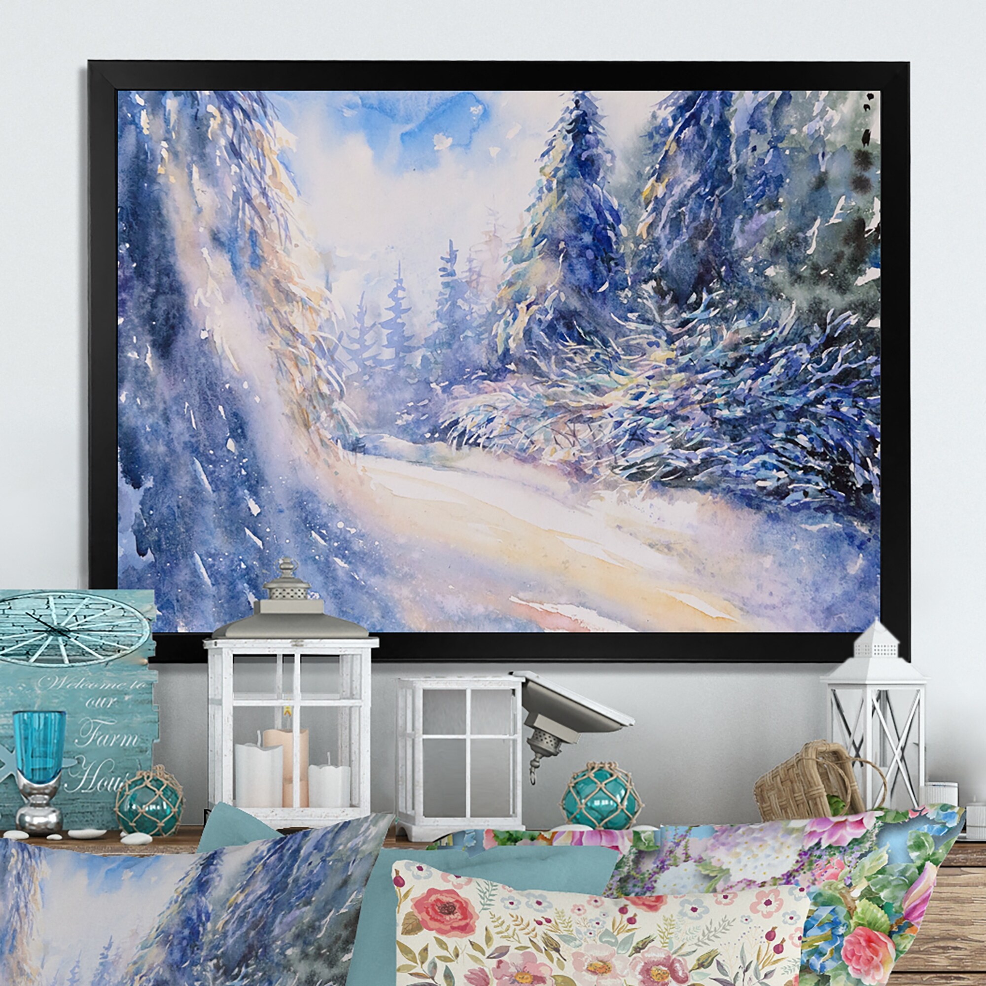 Designart "Magic Winter Landscape Under Snow" Cabin & Lodge Framed Wall Art
