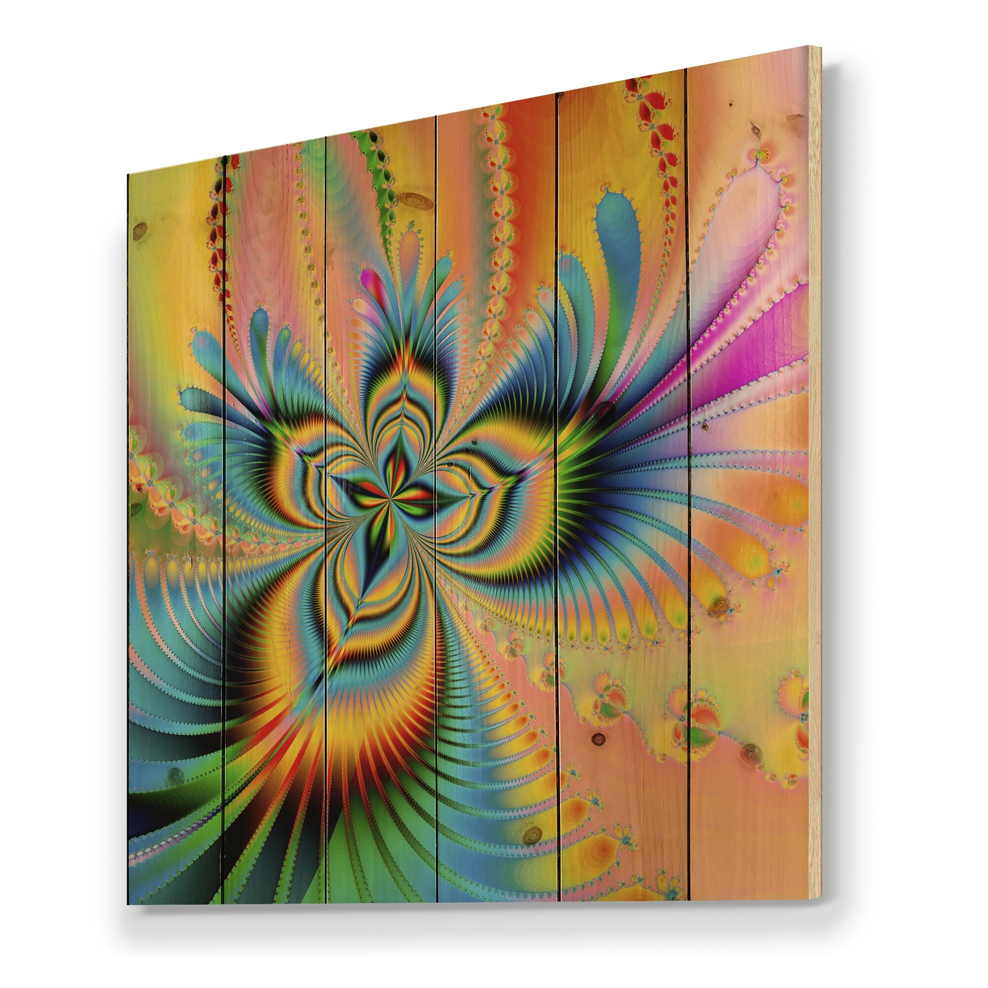 Designart 'Fractal Portal Magic II' Modern Print on Natural Pine Wood