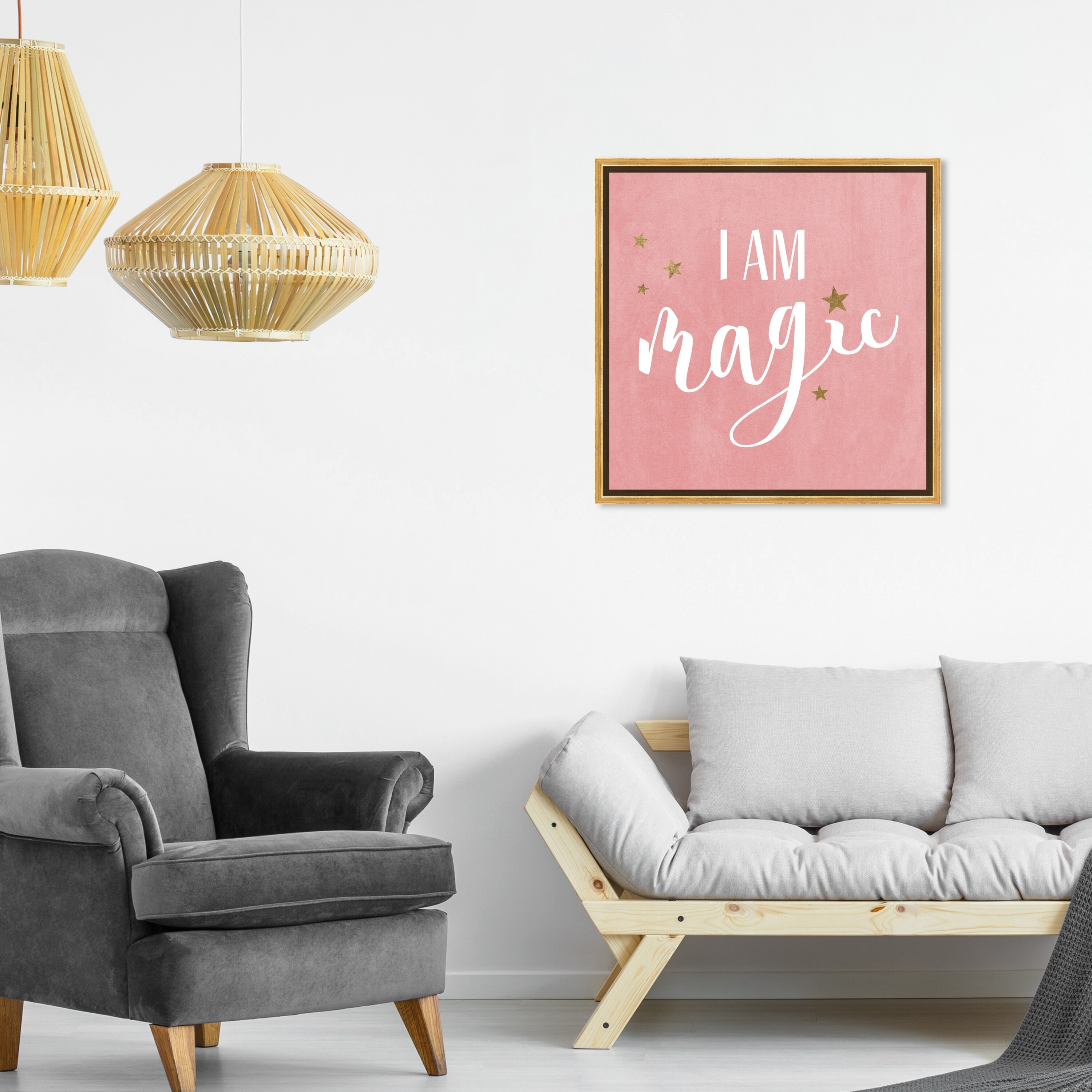 Oliver Gal 'I Am Magic Velvet' Typography and Quotes Wall Art Framed Canvas Print Quotes and Sayings - Pink, Gold