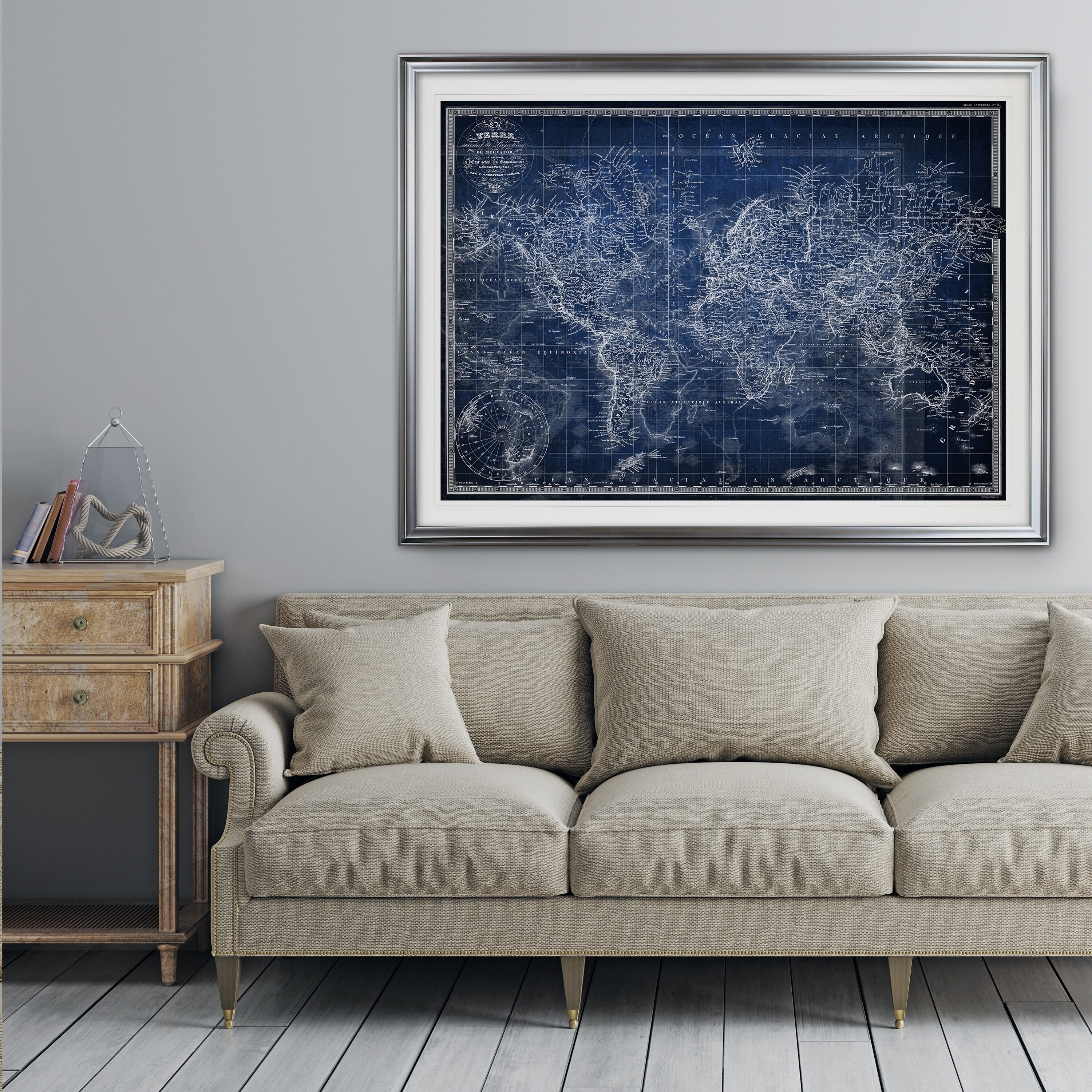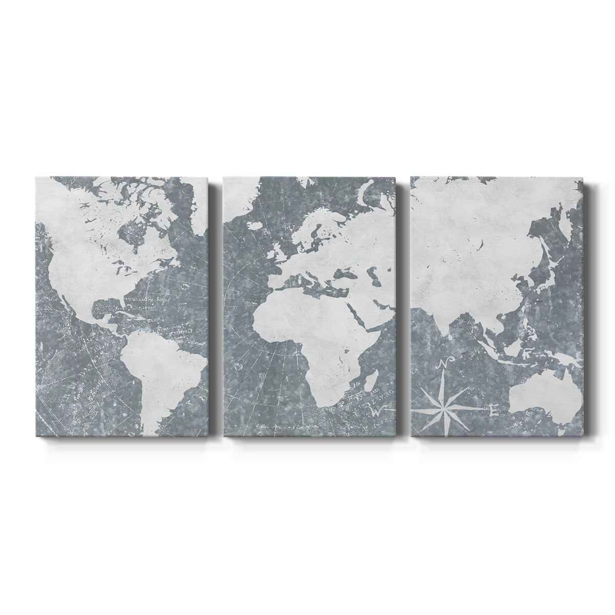 Designart "Slate World Map II" Traditional Framed Wall Decor Set of 3 - 4 Colors of Frames
