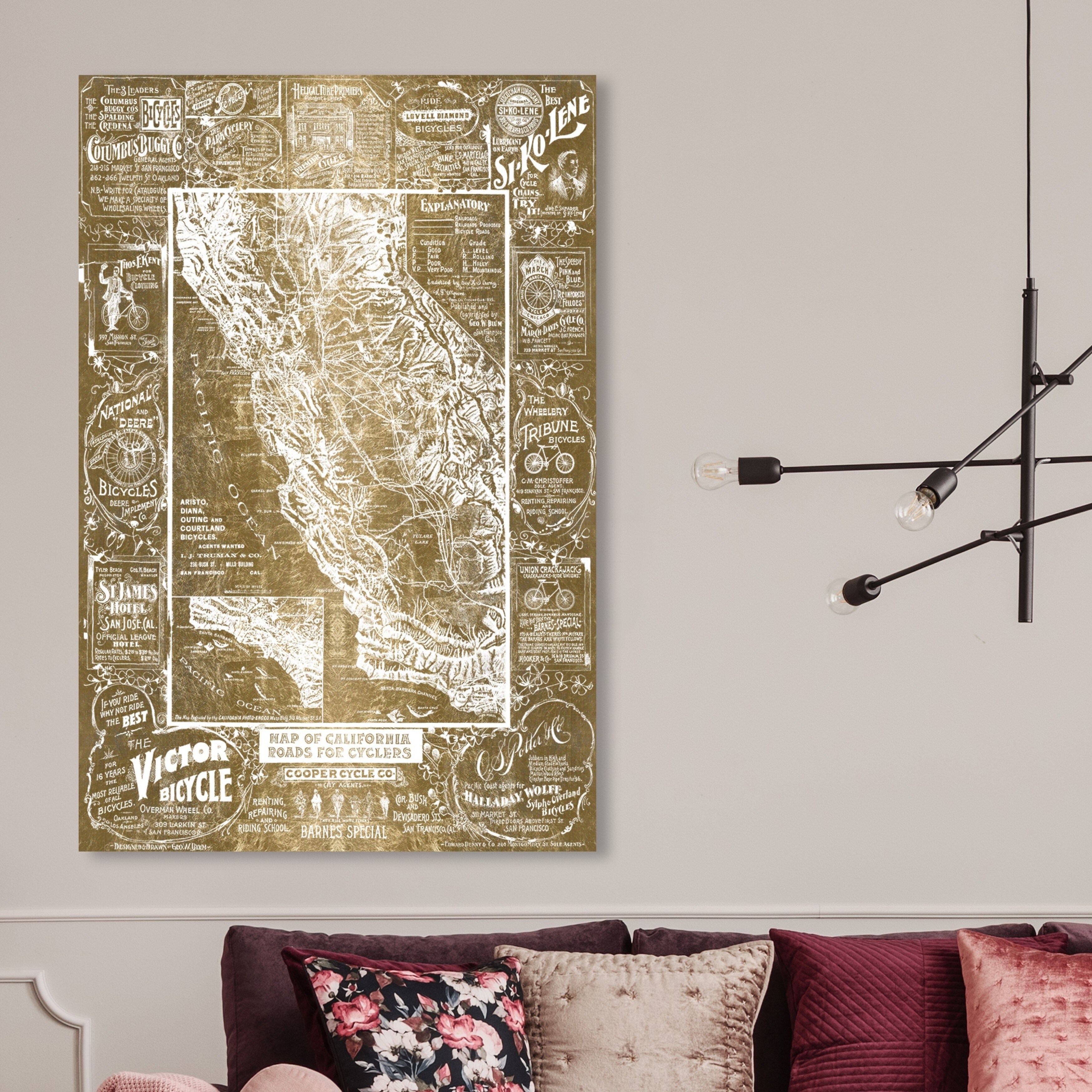 Oliver Gal 'Map of California for Cyclers Gold' Maps and Flags Wall Art Canvas Print - Gold, White