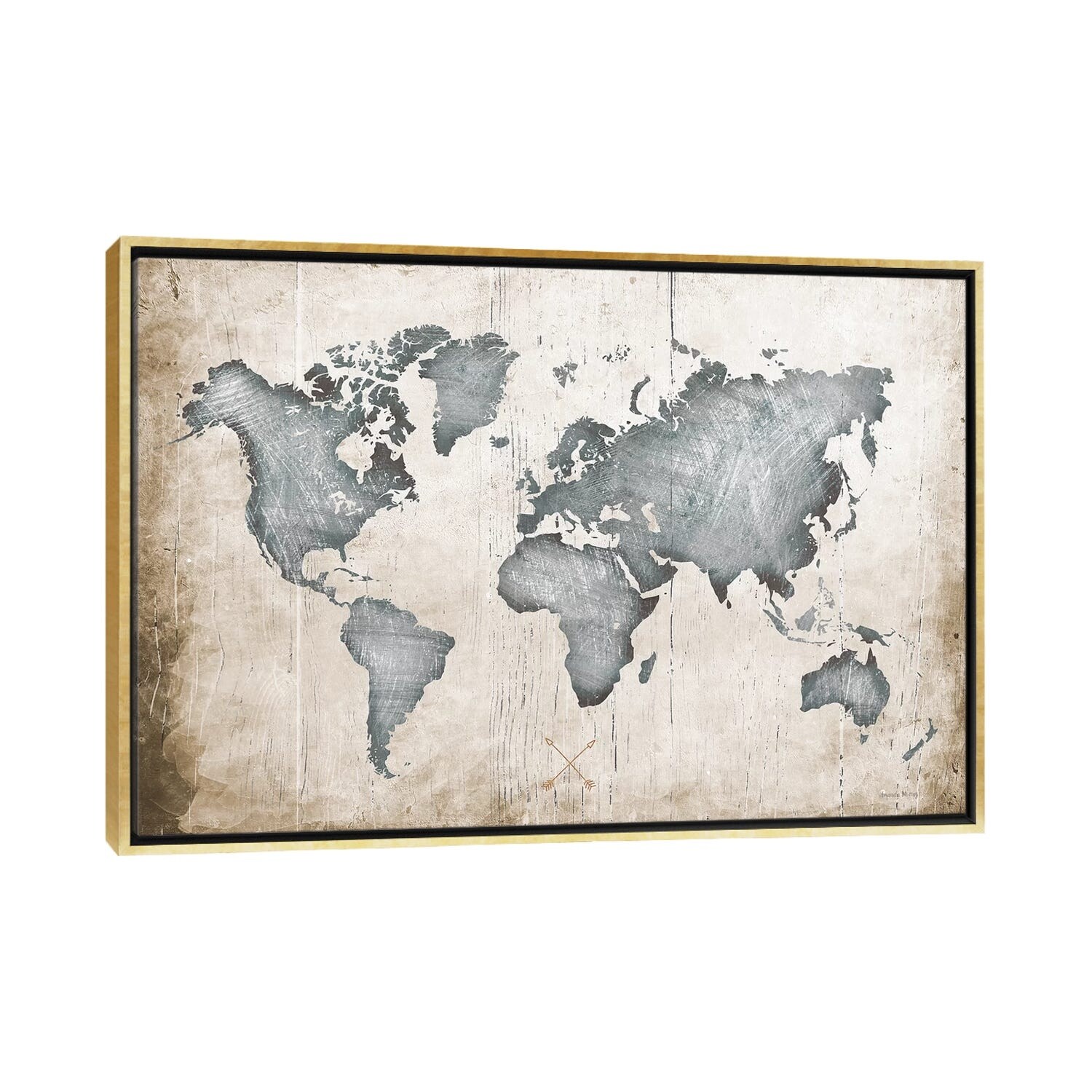 iCanvas "Inspirational Quotes Gold World Map" by blursbyai Framed