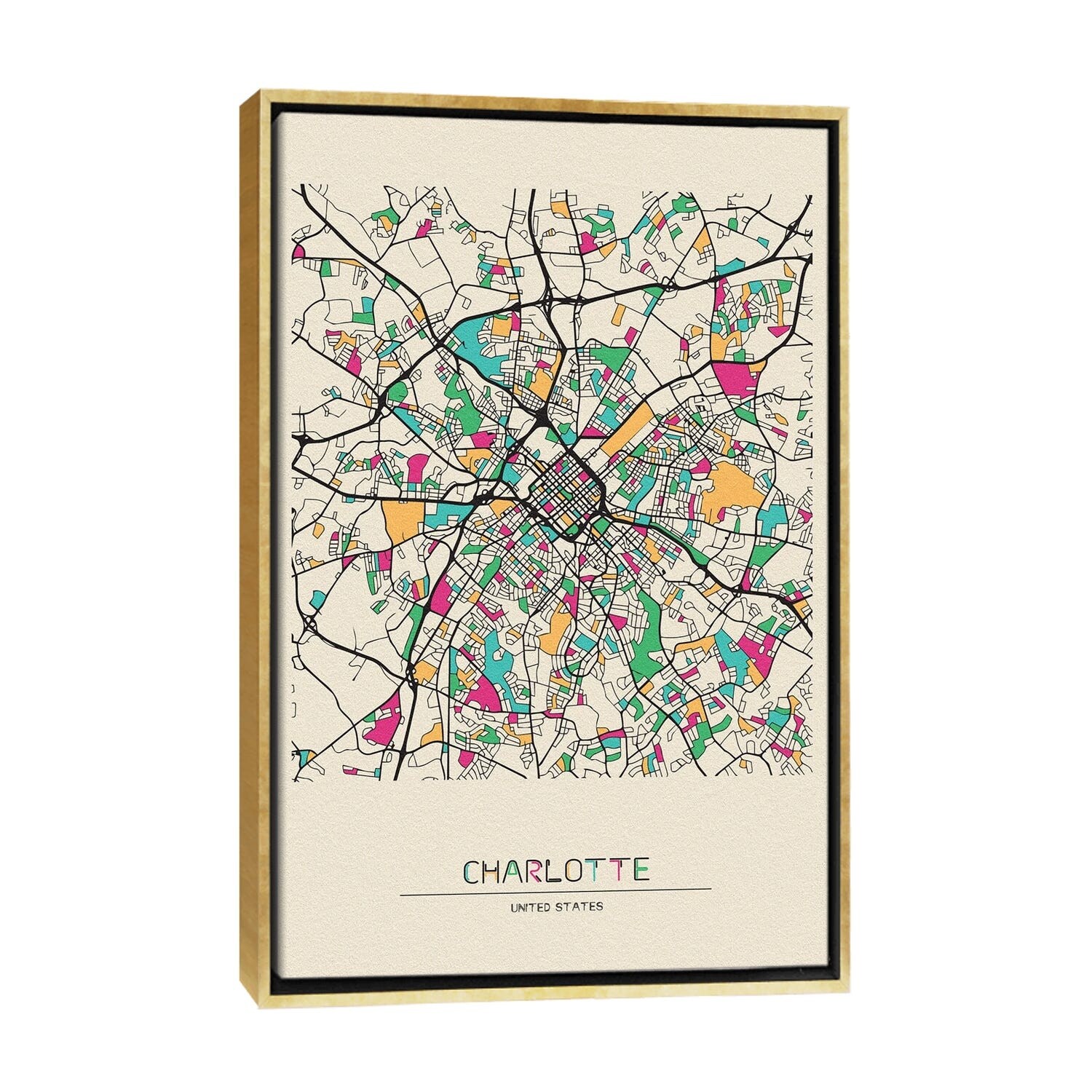iCanvas "Charlotte, North Carolina Map" by Ayse Deniz Akerman Framed
