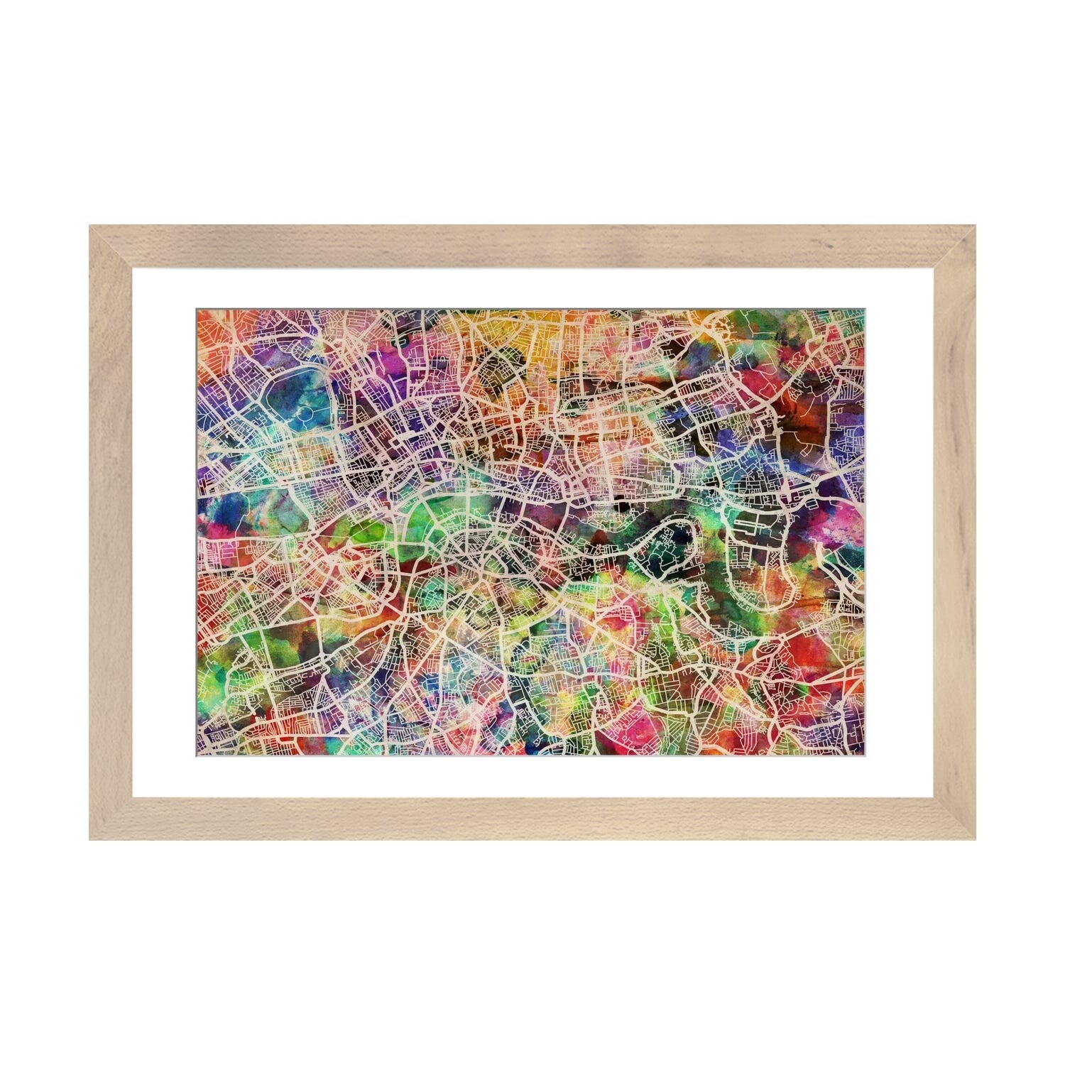 iCanvas "London Map Watercolor II" by Michael Tompsett Framed