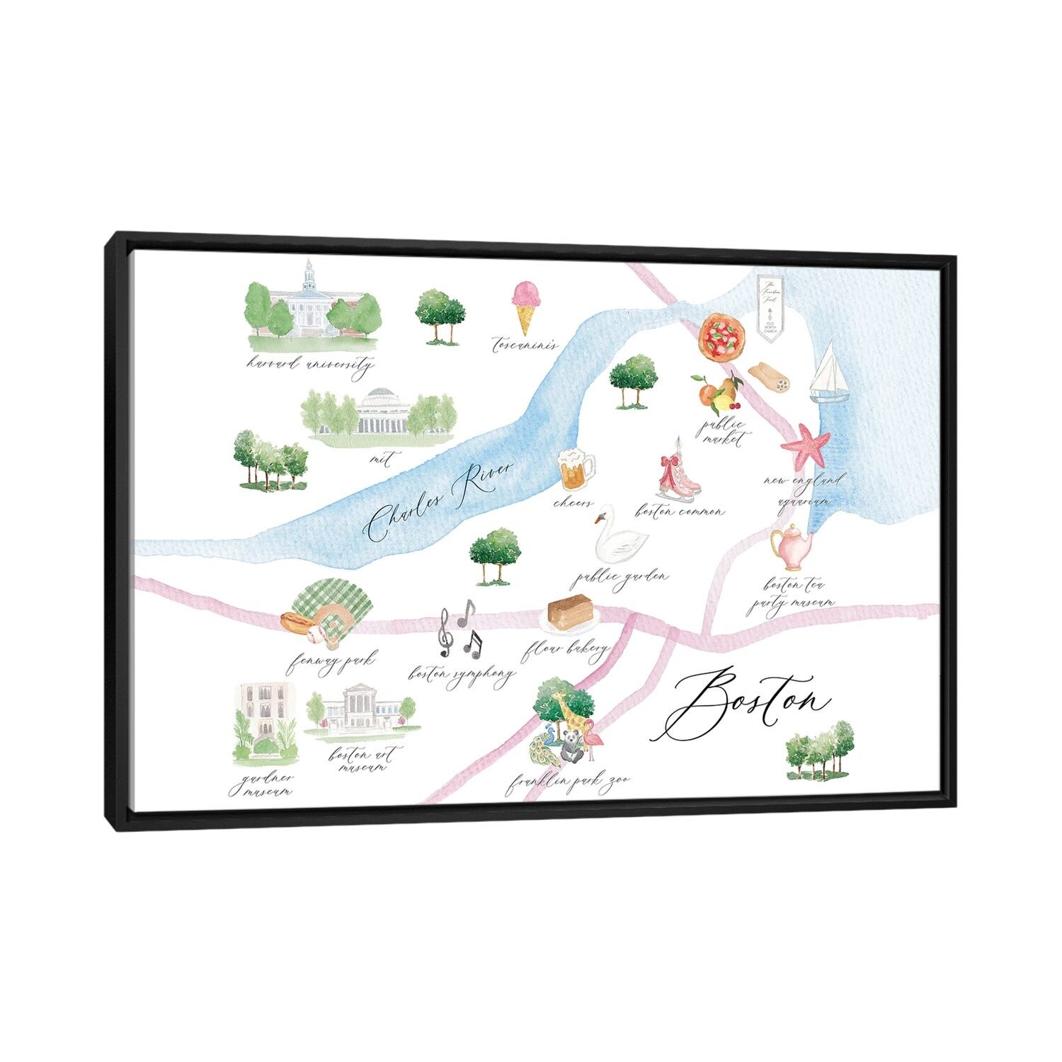 iCanvas "Boston Massachusetts Map" by Sarah Hayden Framed|Bl