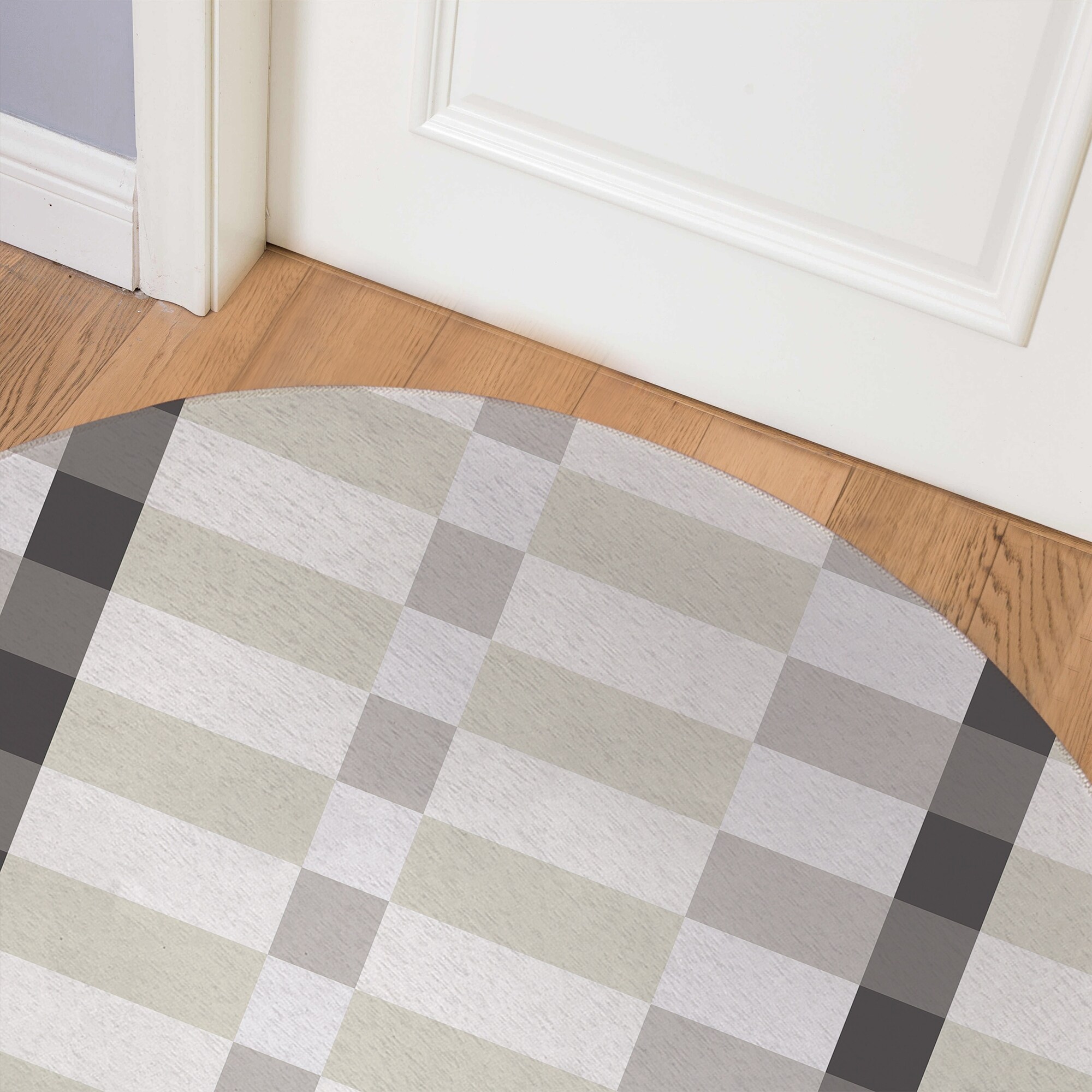 MODERN PLAID GREY AND CREAM Indoor Floor Mat By Kavka Designs