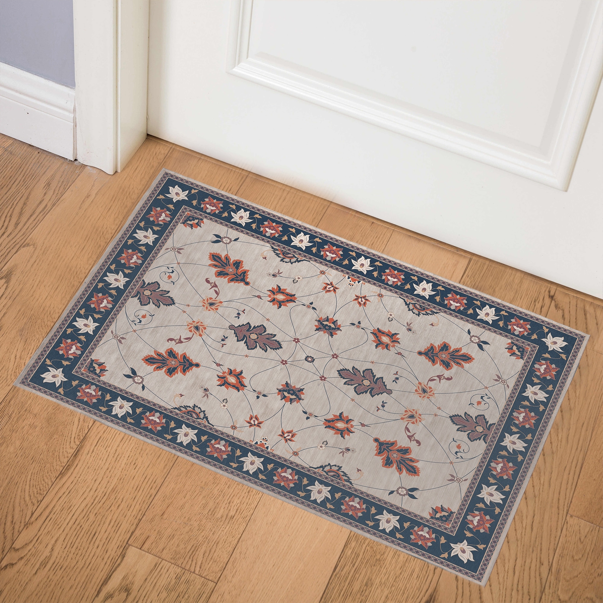 BOHO FLORAL BLUE Indoor Floor Mat By Kavka Designs