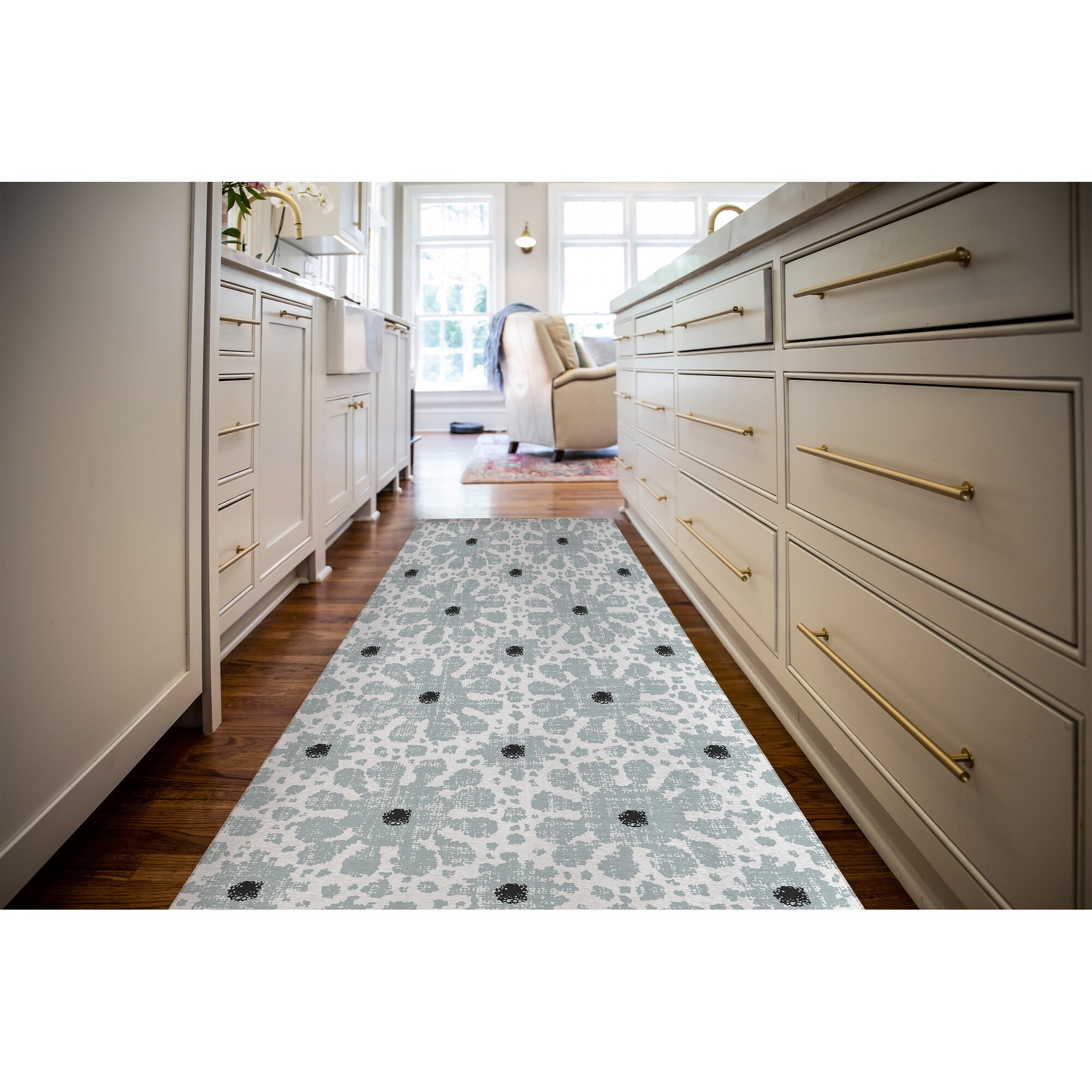 FARMHOUSE FLOWER LIGHT BLUE Kitchen Mat By Kavka Designs