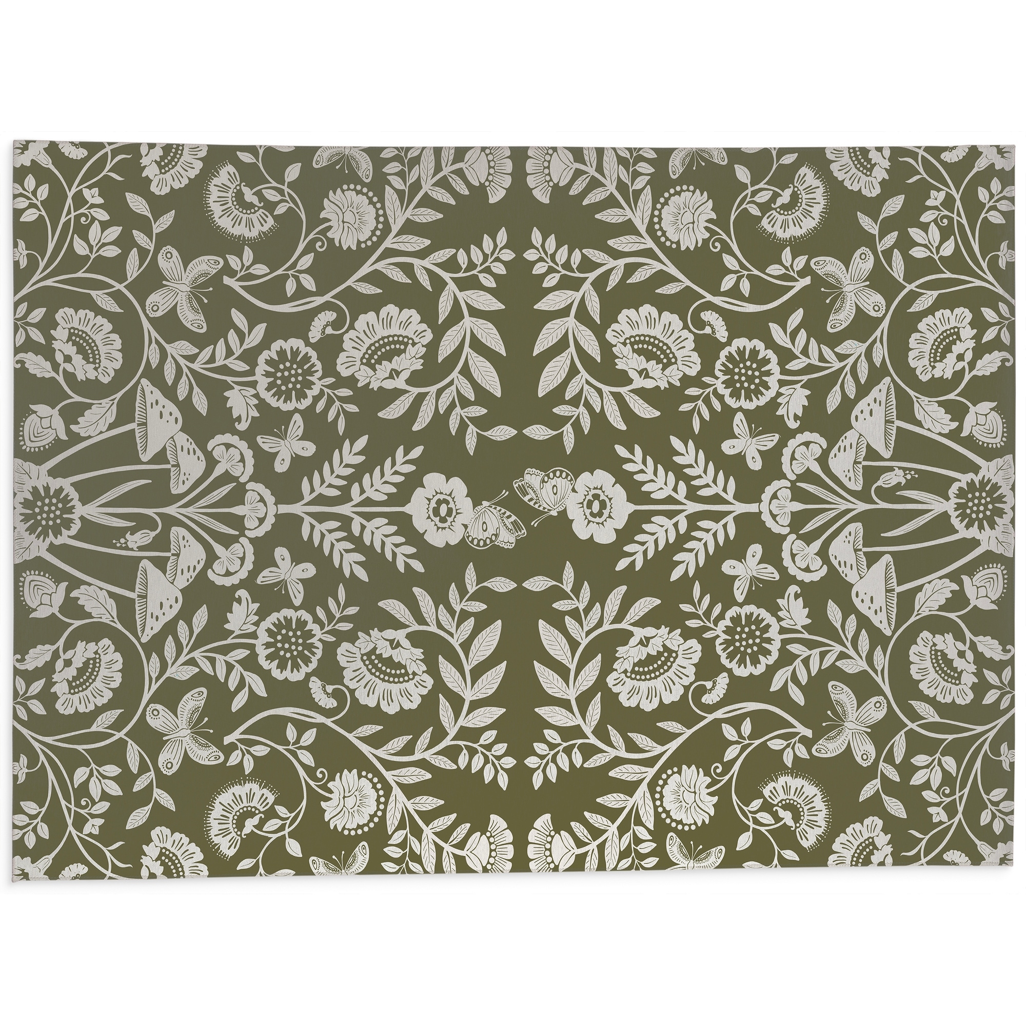 AUTUMN BUTTERFLY GARDEN OLIVE Kitchen Mat By Kavka Designs