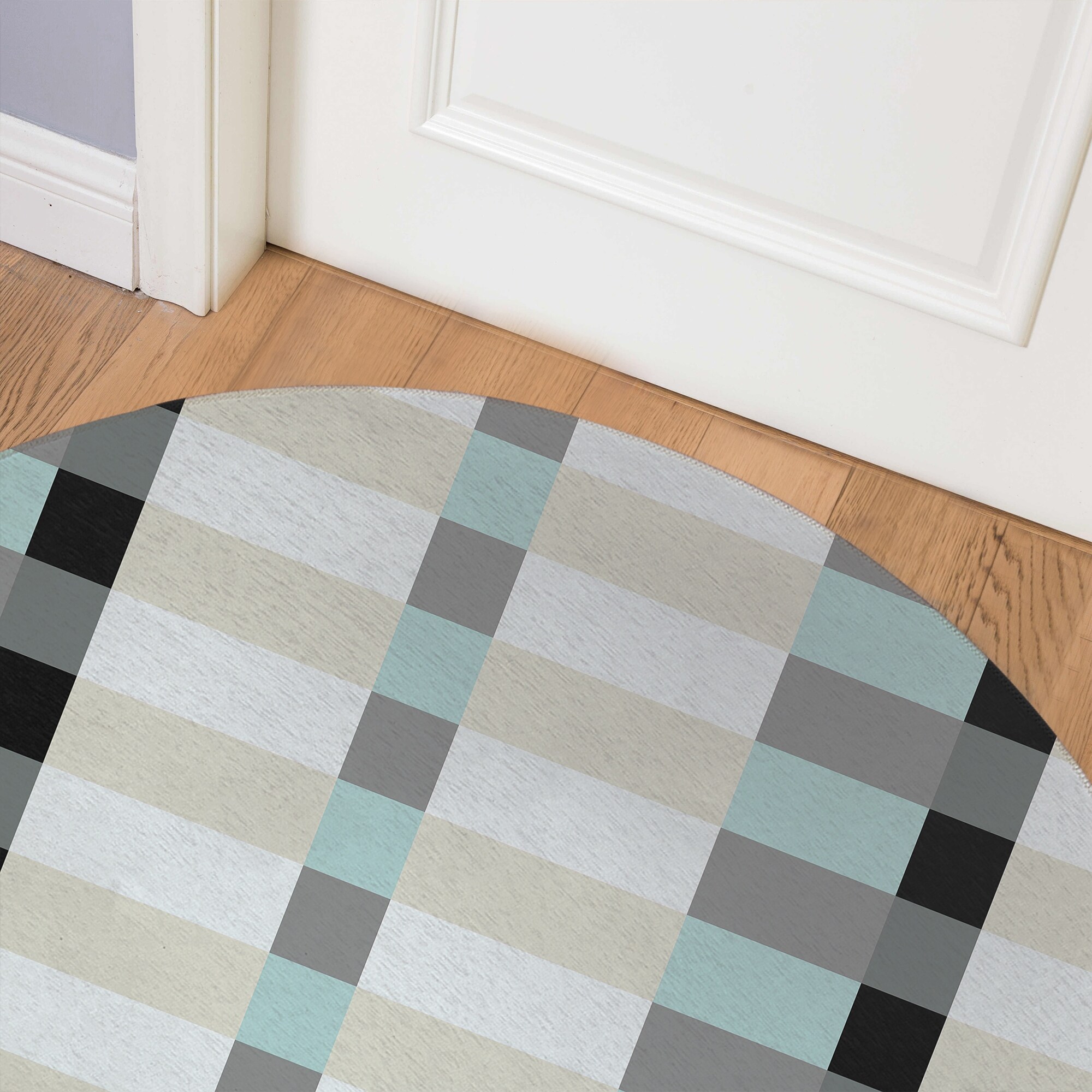 MODERN PLAID TEAL Indoor Floor Mat By Kavka Designs