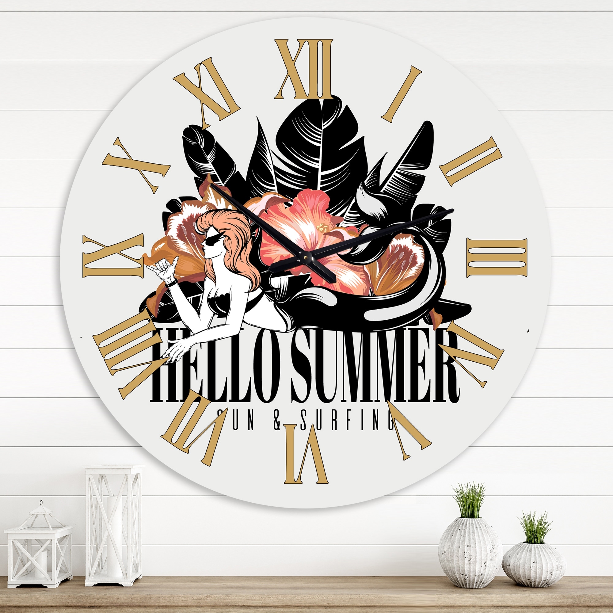 Designart 'Hello Summer llustratiOn of Mermaid With Flowers' Modern wall clock