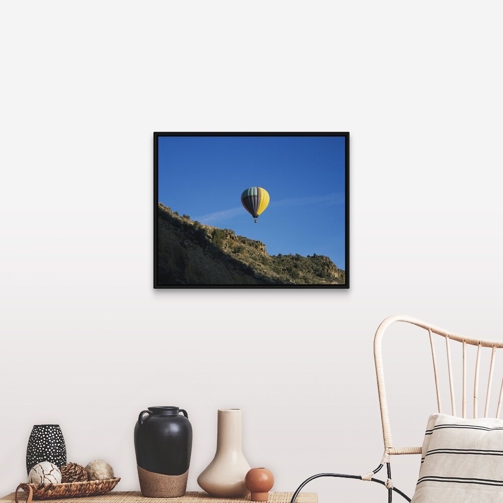 "Low angle view of a hot air balloon in the sky, Taos County, New Mexico" Black Float Frame Canvas Art