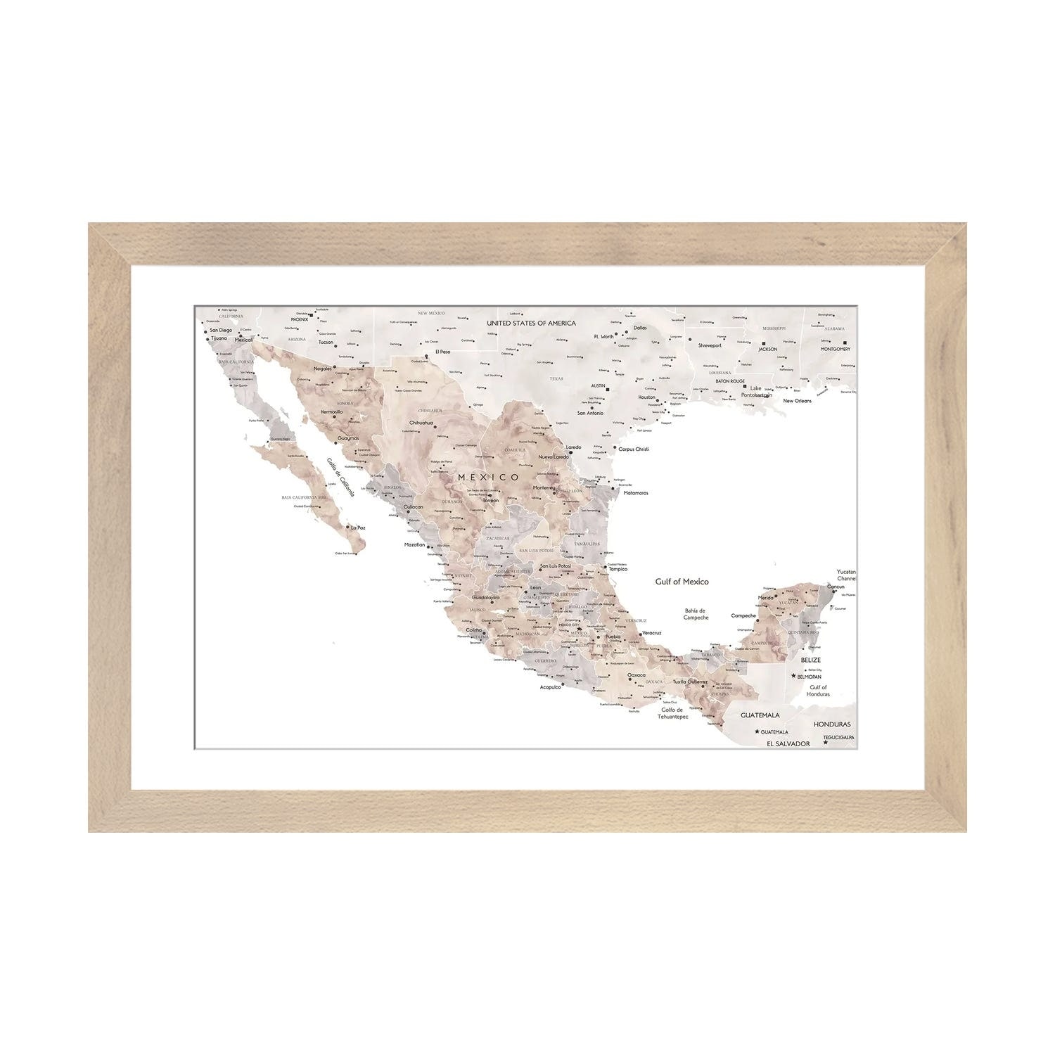 iCanvas "Detailed Watercolor World Map of Mexico With Cities" by blursbyai