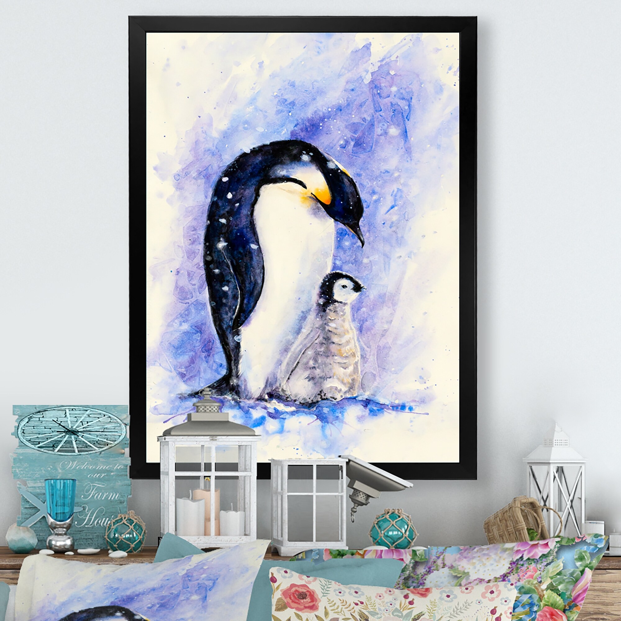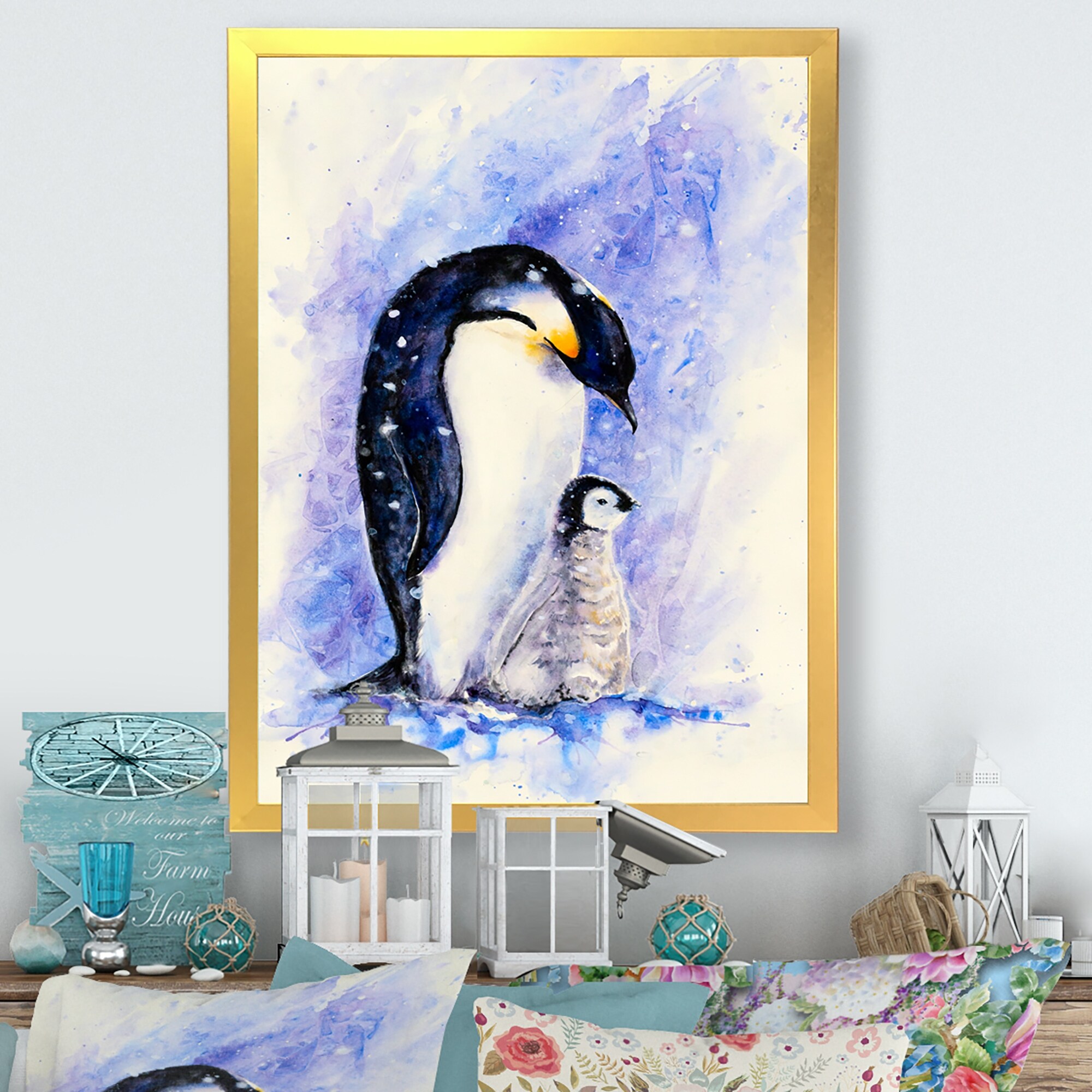 Designart "Royal Penguins Mom With Her Baby" Traditional Framed artwork