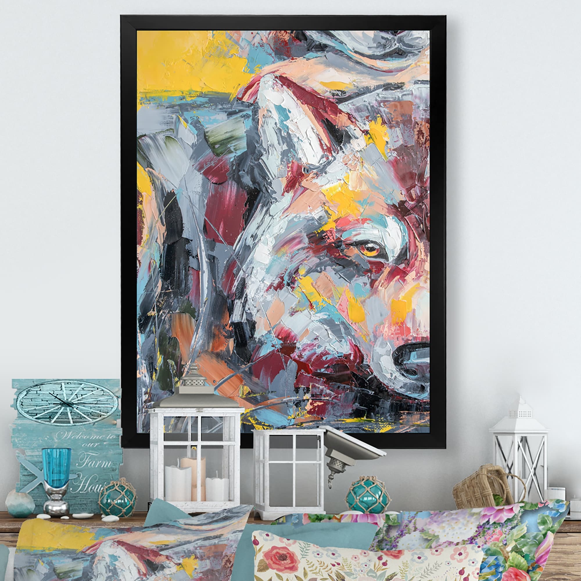 Designart "Colorful Wolf Wildlife Emotion III" Traditional Framed artwork